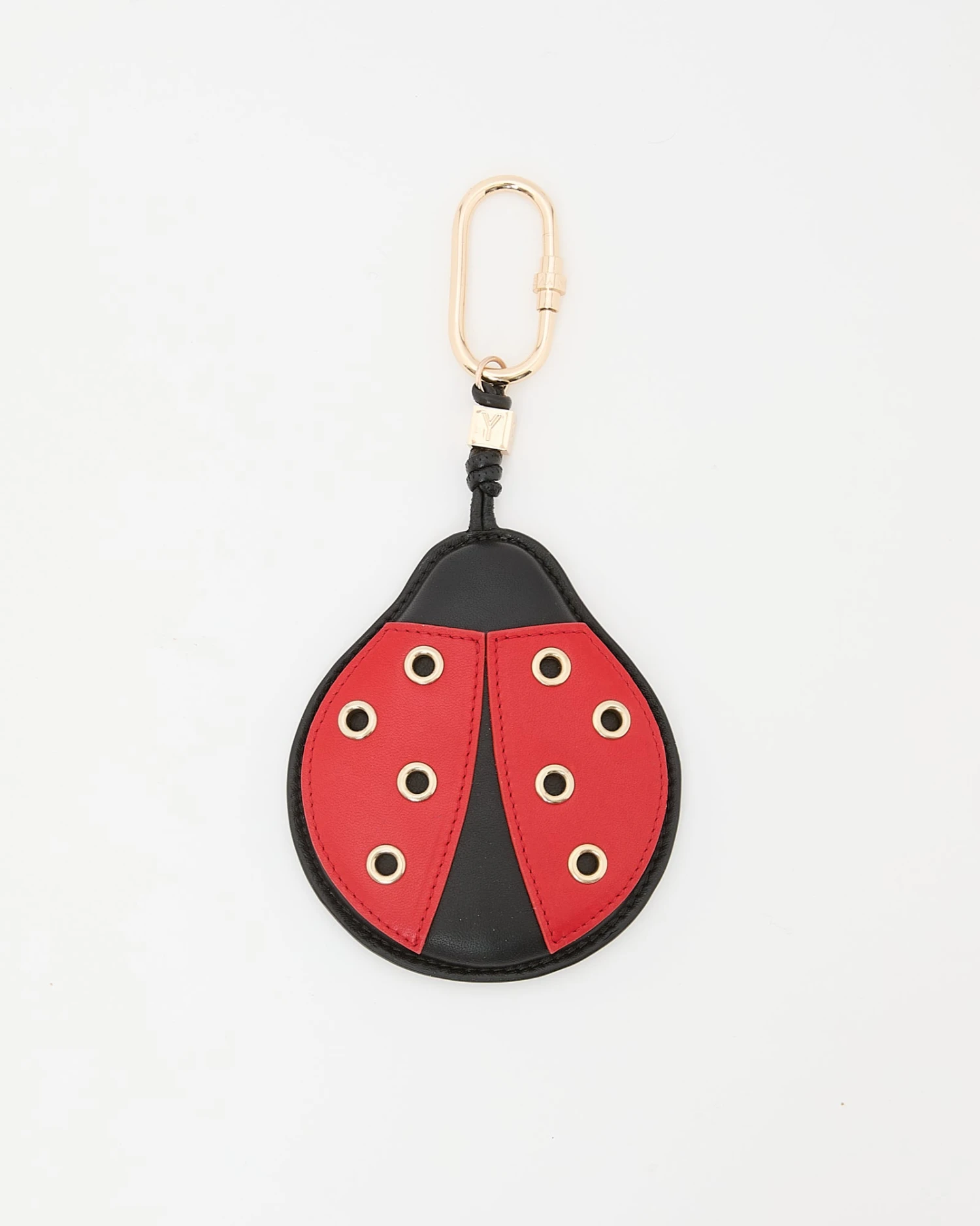 Travaillé dans un cuir d’agneau brillant surpiqué, ce petit accessoire charmant représentant une coccinelle porte-chance vient s’accrocher sur un sac ou un trousseau de clés.