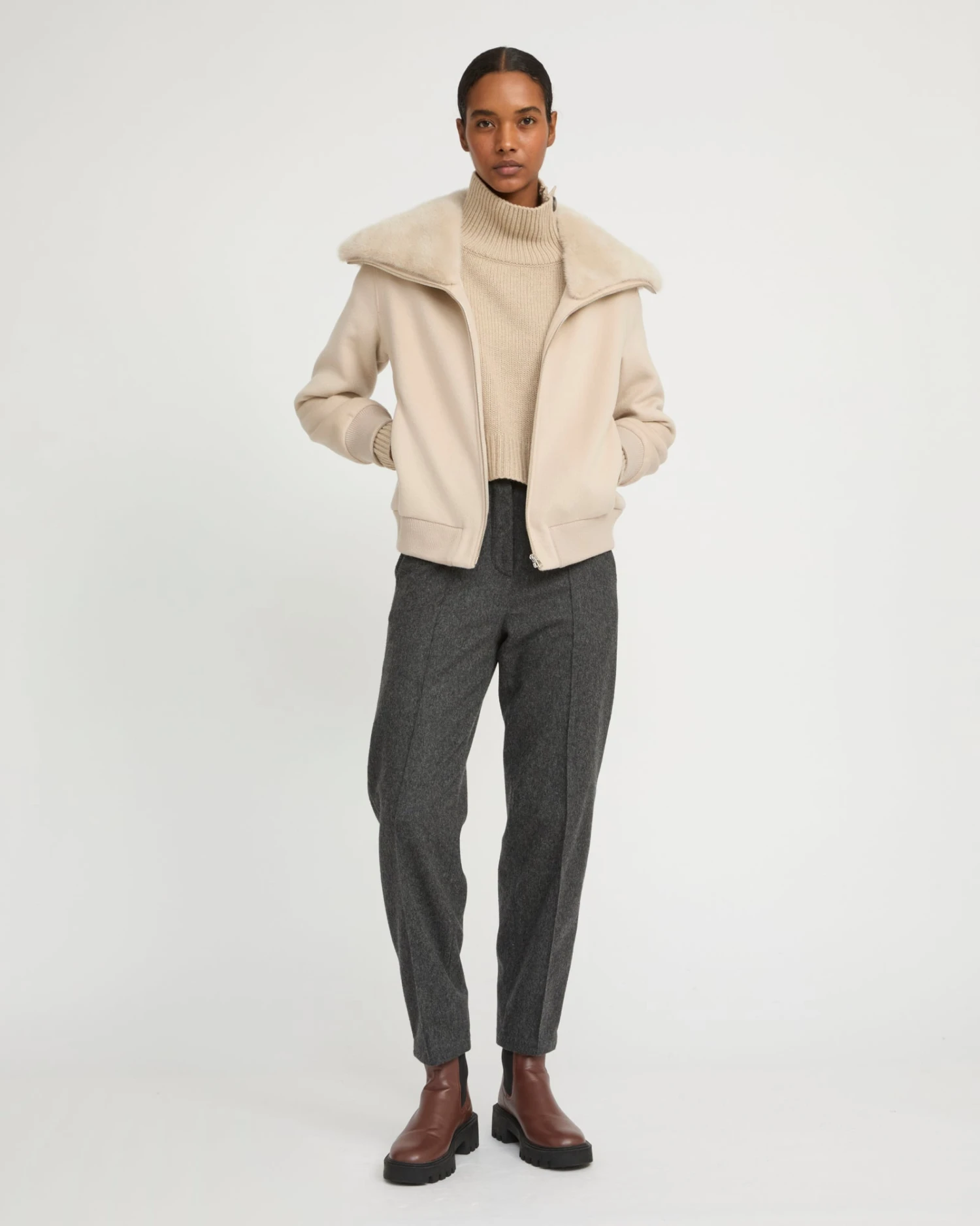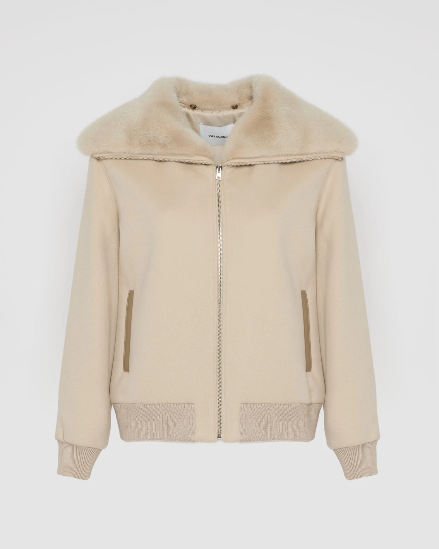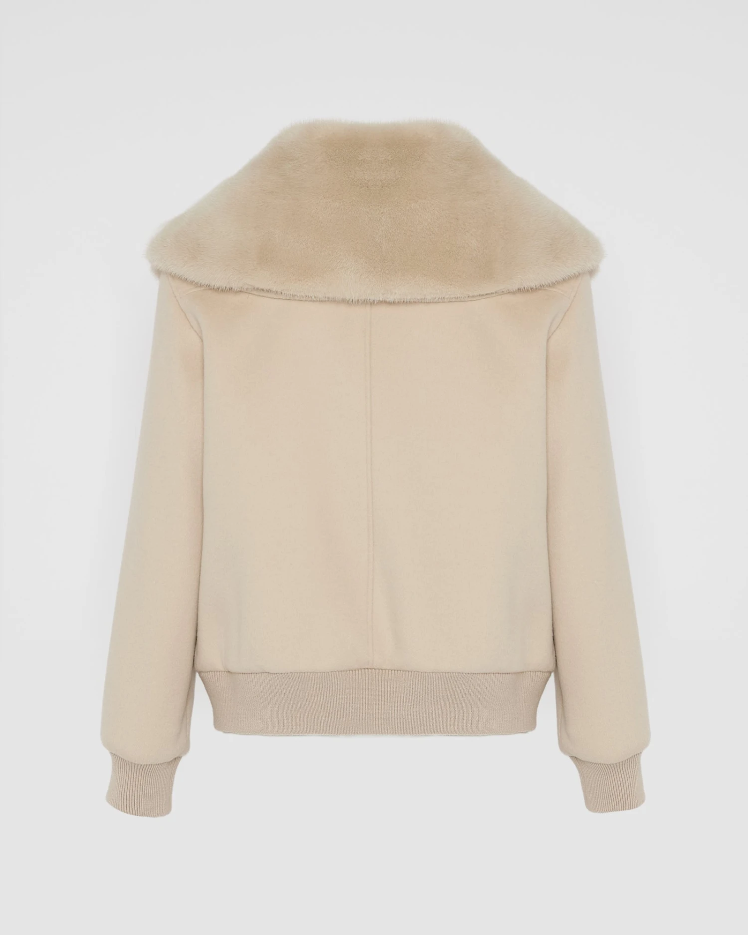 Un large col amovible en fourrure de vison douce et résistante apporte sa touche d’élégance luxueuse à un blouson court en cachemire mélangé, aux lignes sportives et à la fermeture avant zippée.