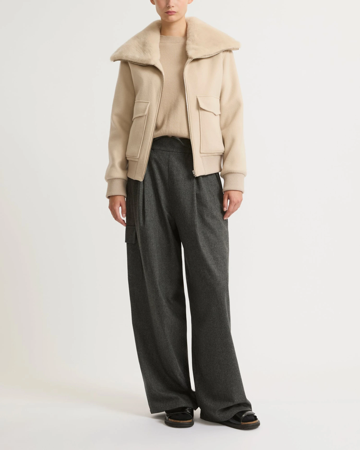 – Col en fourrure de vison amovible