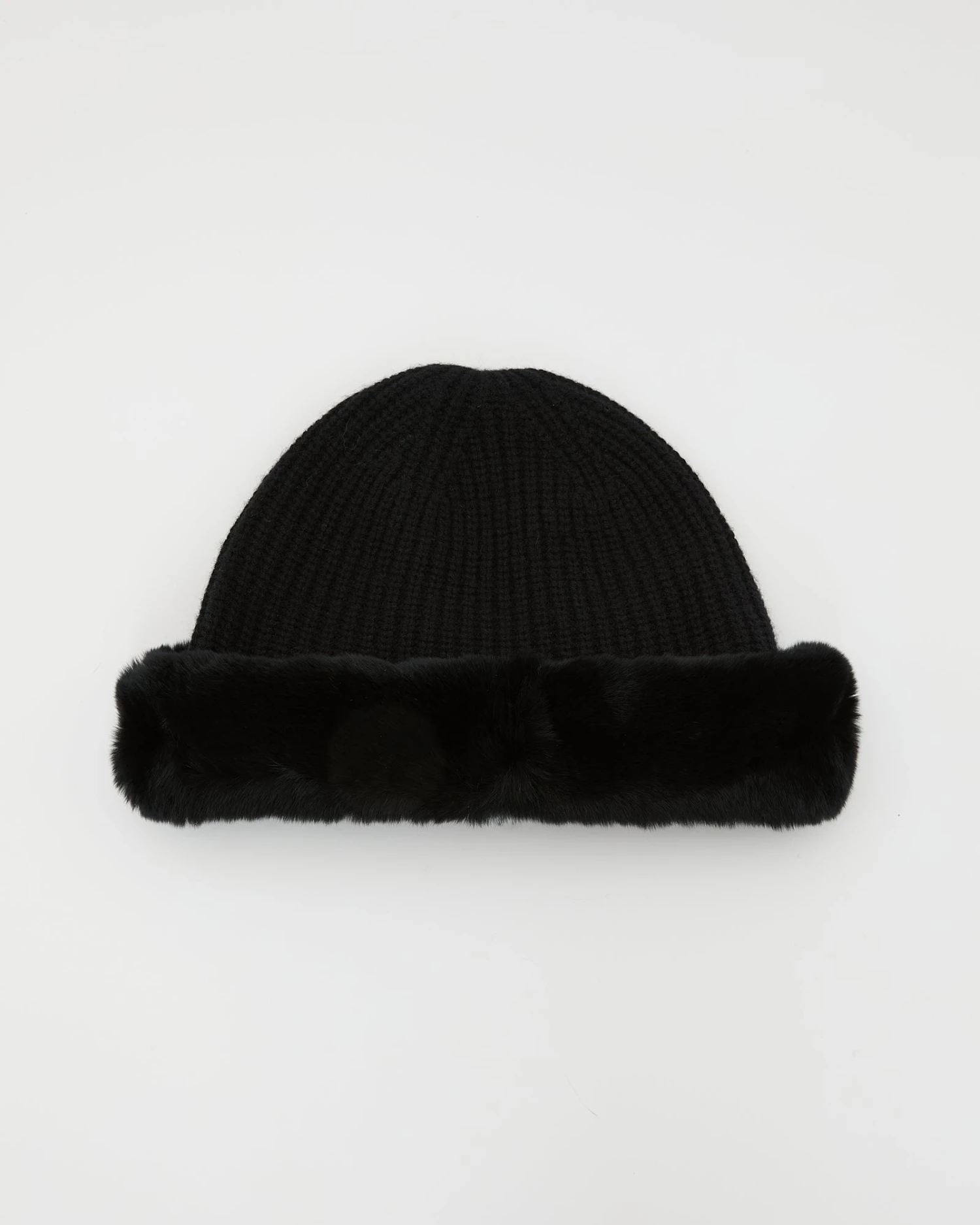 – Maille cachemire et laine avec revers en fourrure de lapin rex