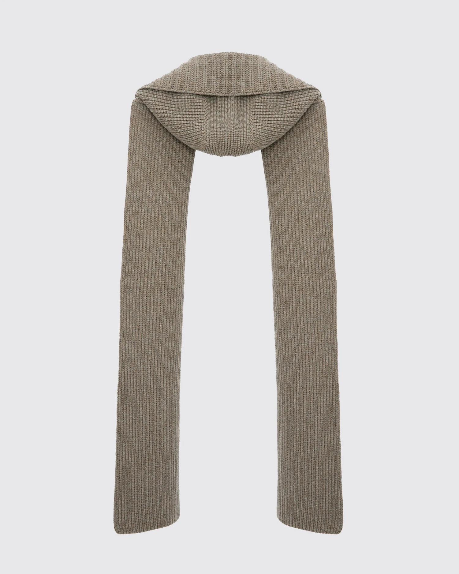 Un accessoire chaleureux et versatile pour affronter l’hiver, cette capuche écharpe vient recouvrir à la fois la tête et le cou avec sa maille à côtes luxueuse en laine et cachemire.