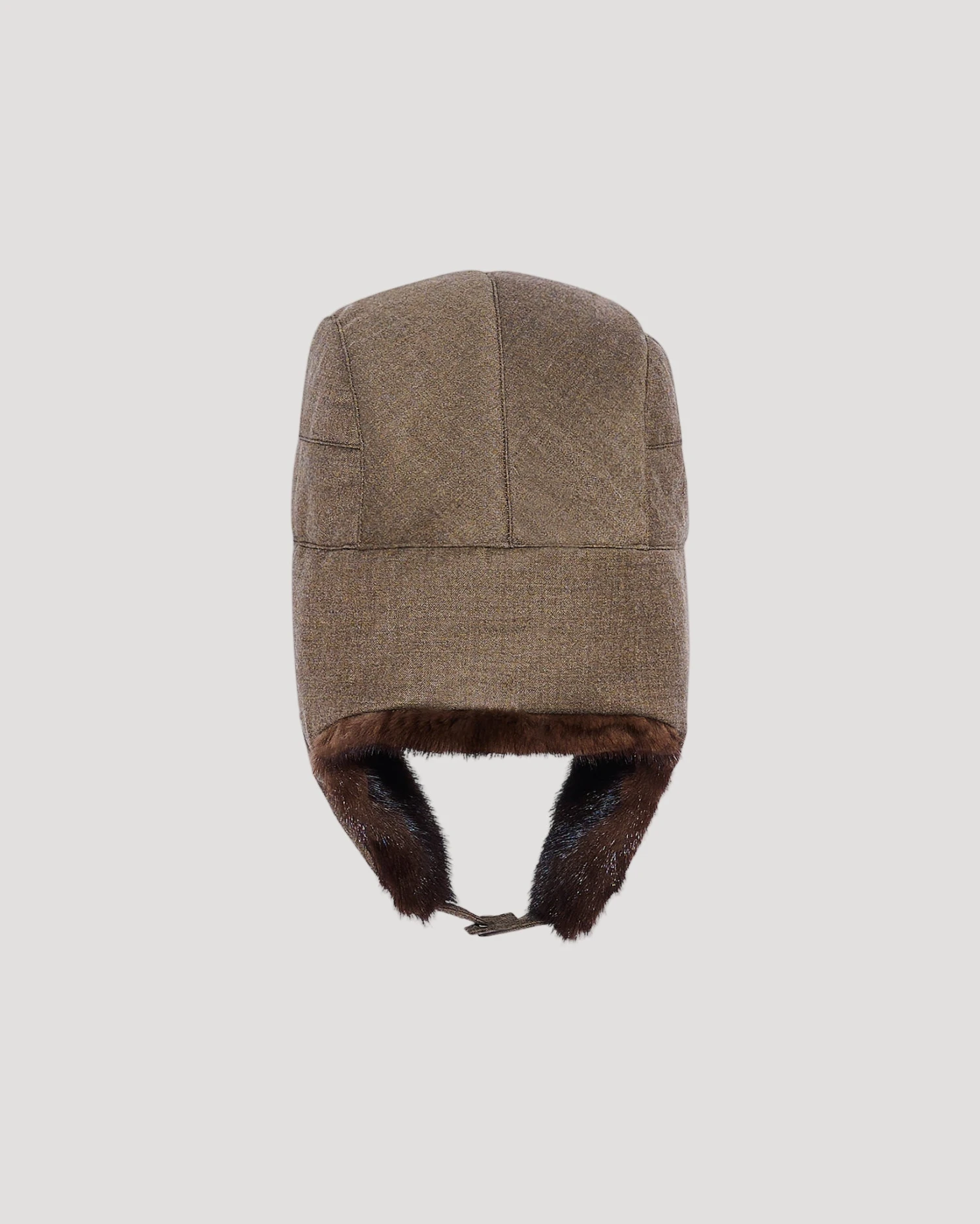Modèle hybride entre la chapka et la casquette, ce couvre-chef élégant assure une protection testée jusqu’à -10°C. L’association de la fourrure de vison douce et épaisse en doublure de pattes, et d’un tissu Loro Piana, qui utilise la technique Storm System pour garantir une parfaite protection contre les éléments, permet de garder la tête et les oreilles au chaud avec style !