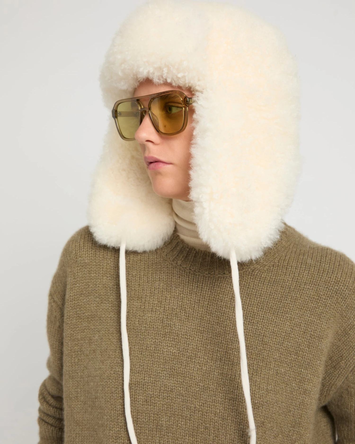 Le visuel doux et rebondi de l’agneau cachemire s’associe à sa chaleur pour une chapka au style affirmé qui vient compléter une silhouette hivernale. La maille s’invite en doublure et sur les liens de serrage
