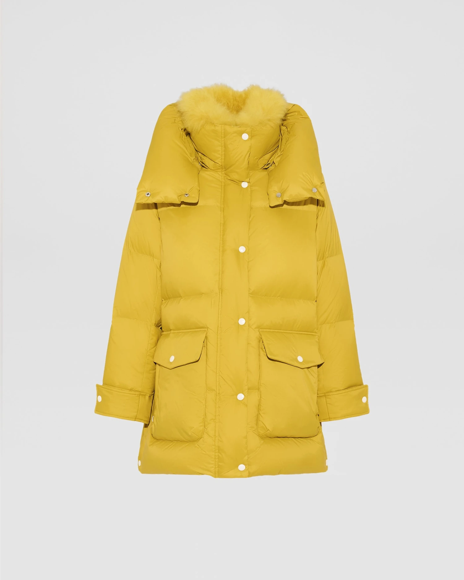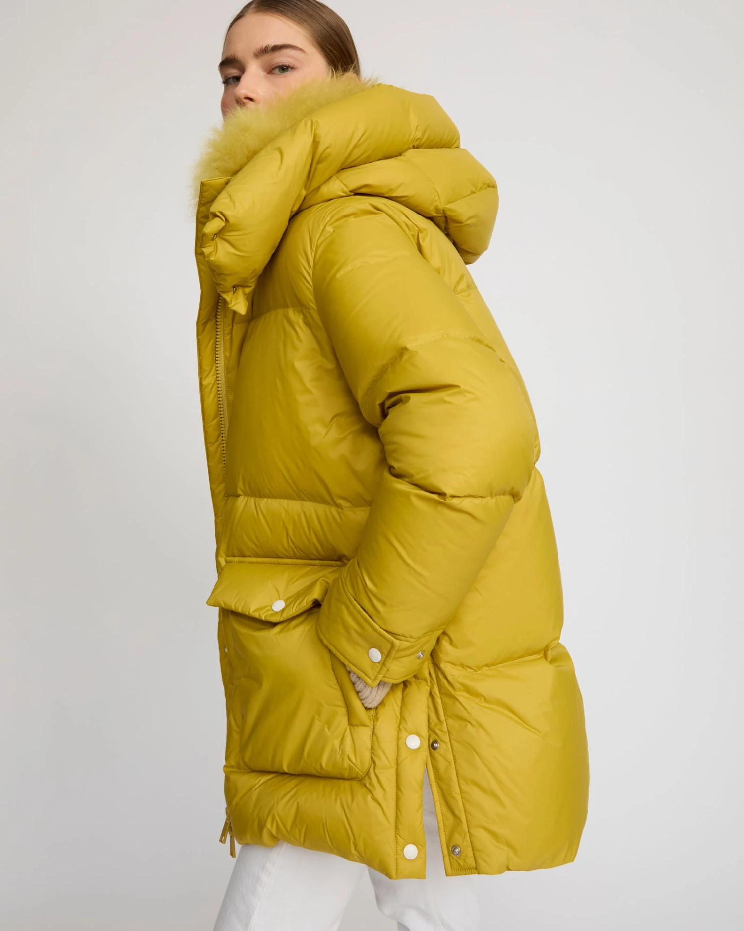 La laine vaporeuse de l’agneau du Tibet vient apporter sa douceur exceptionnelle au col d’une doudoune garnie de duvet très haute qualité, qui garantit une isolation parfaite jusqu’à -10°C. Les surpiqures du tissu technique apportent un visuel sportif et élégant à ce modèle qui vous accompagnera de la ville aux pistes de ski. Col et capuche amovible, deux grandes poches à rabat pour y glisser gants et téléphone. Une patte pressionnée sur le zip et des bords côtes aux manches apportent encore plus de protection contre les éléments.