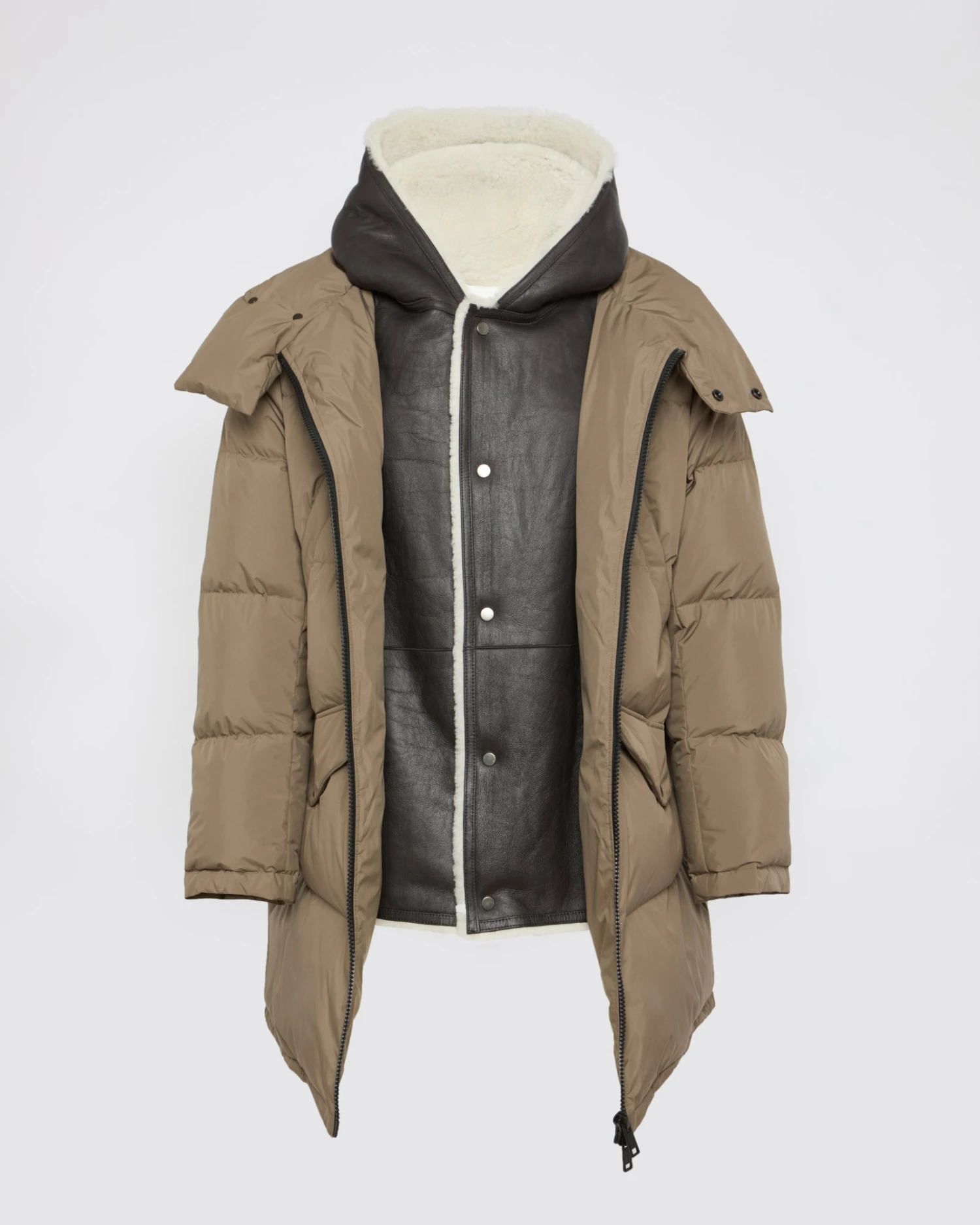 Travaillée dans un tissu technique qui résiste aux éléments, cette doudoune a été testée jusqu’à -10°C pour garantir une protection idéale contre le froid. Sa forme classique s’augmente d’un plastron capuche en douce peau lainée Mérinos qui apporte un contraste de visuel et de texture, avec ses deux faces cuir et laine.