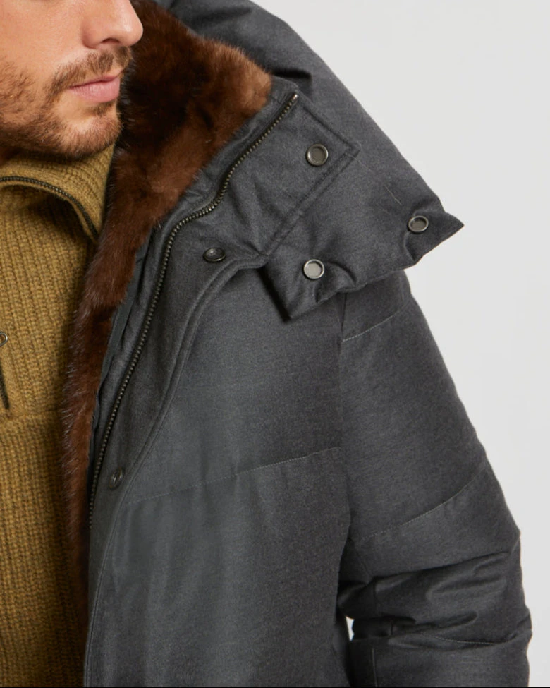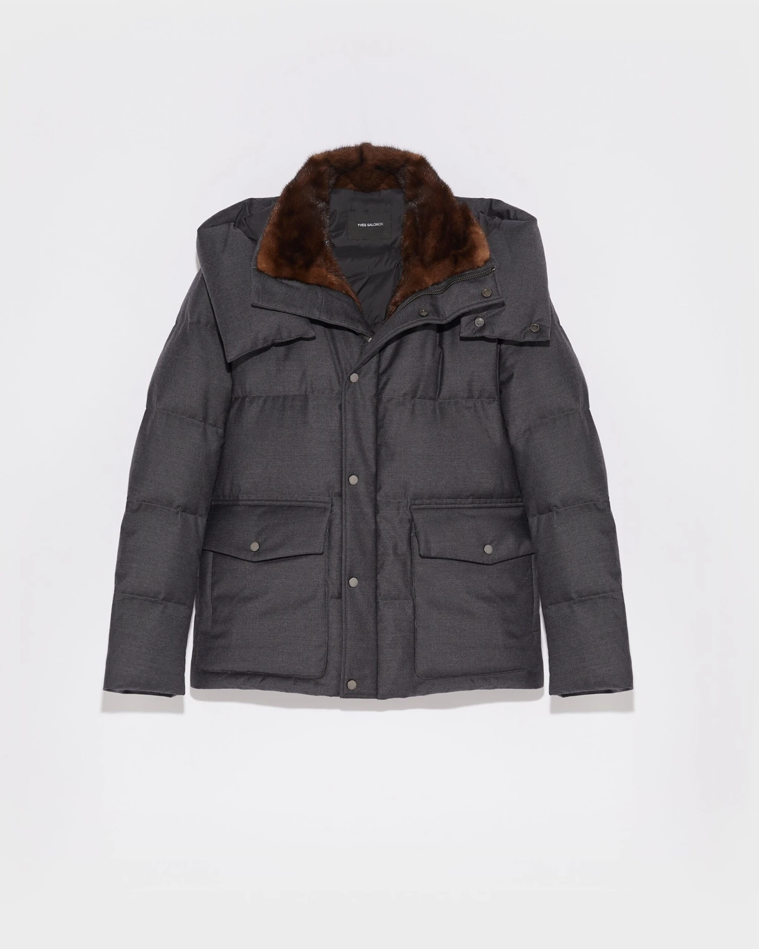 Doudoune en tissu laine-soie Loro Piana et vison long poil