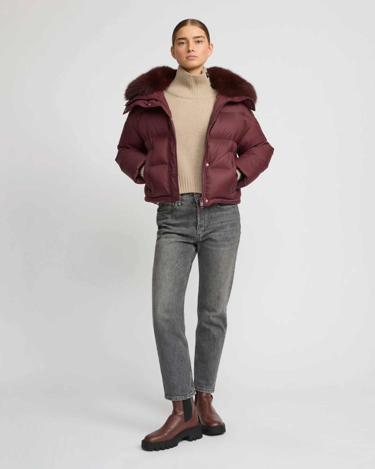 – Garniture col amovible en fourrure de renard