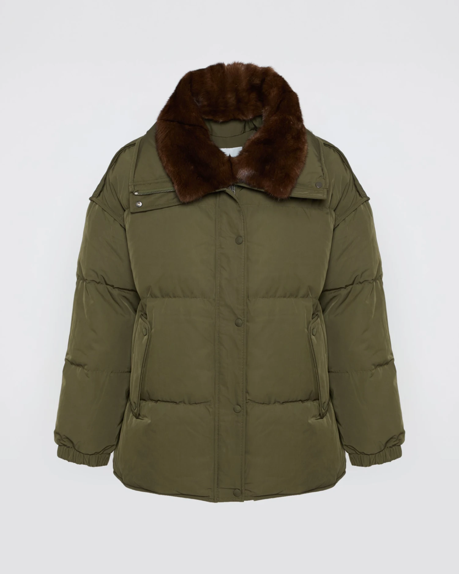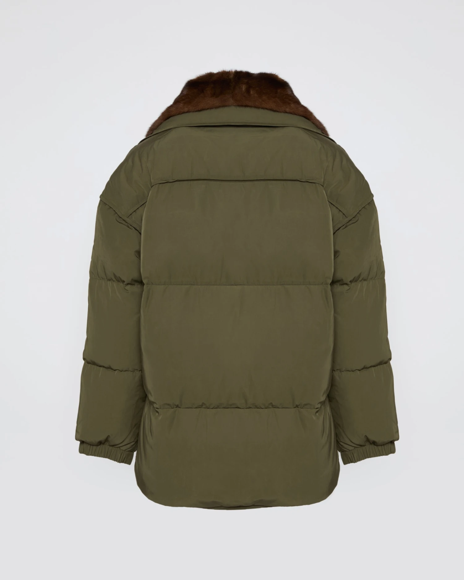 – Doudoune en tissu technique water-repellant garnie plumes et duvet haute qualité