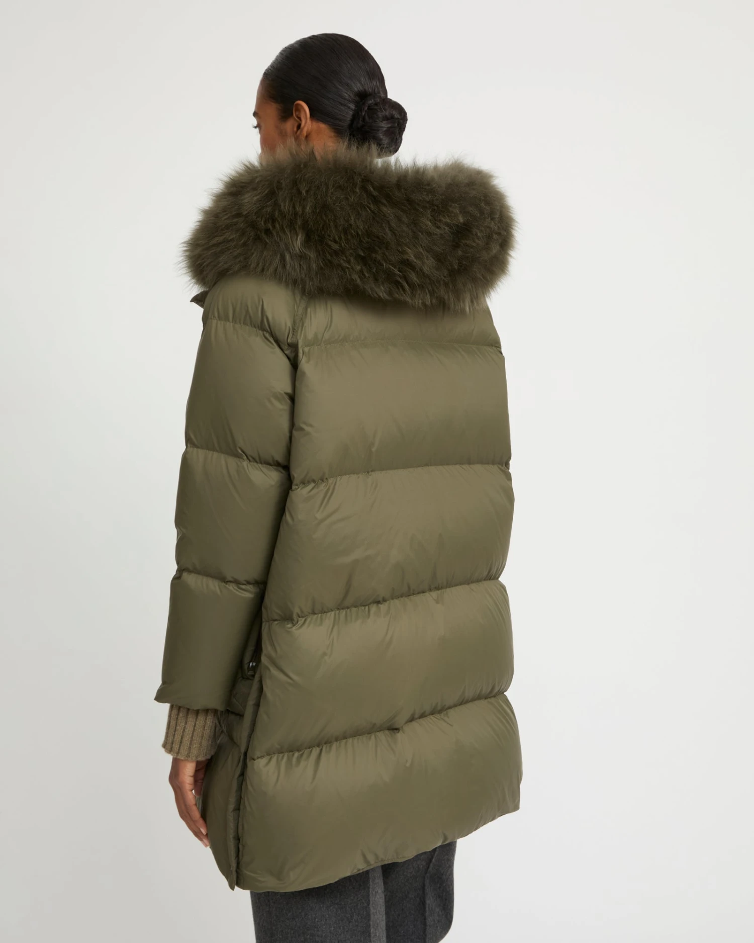 Testée jusqu’à -10°C, cette doudoune longue propose une protection à toute épreuve contre le froid et les intempéries grâce à son tissu technique et sa garniture haute qualité. Un tour de capuche amovible mettant en valeur le poil long et vaporeux de l’agneau défrisé apporte un visuel encore plus élégant et une touche de versatilité.