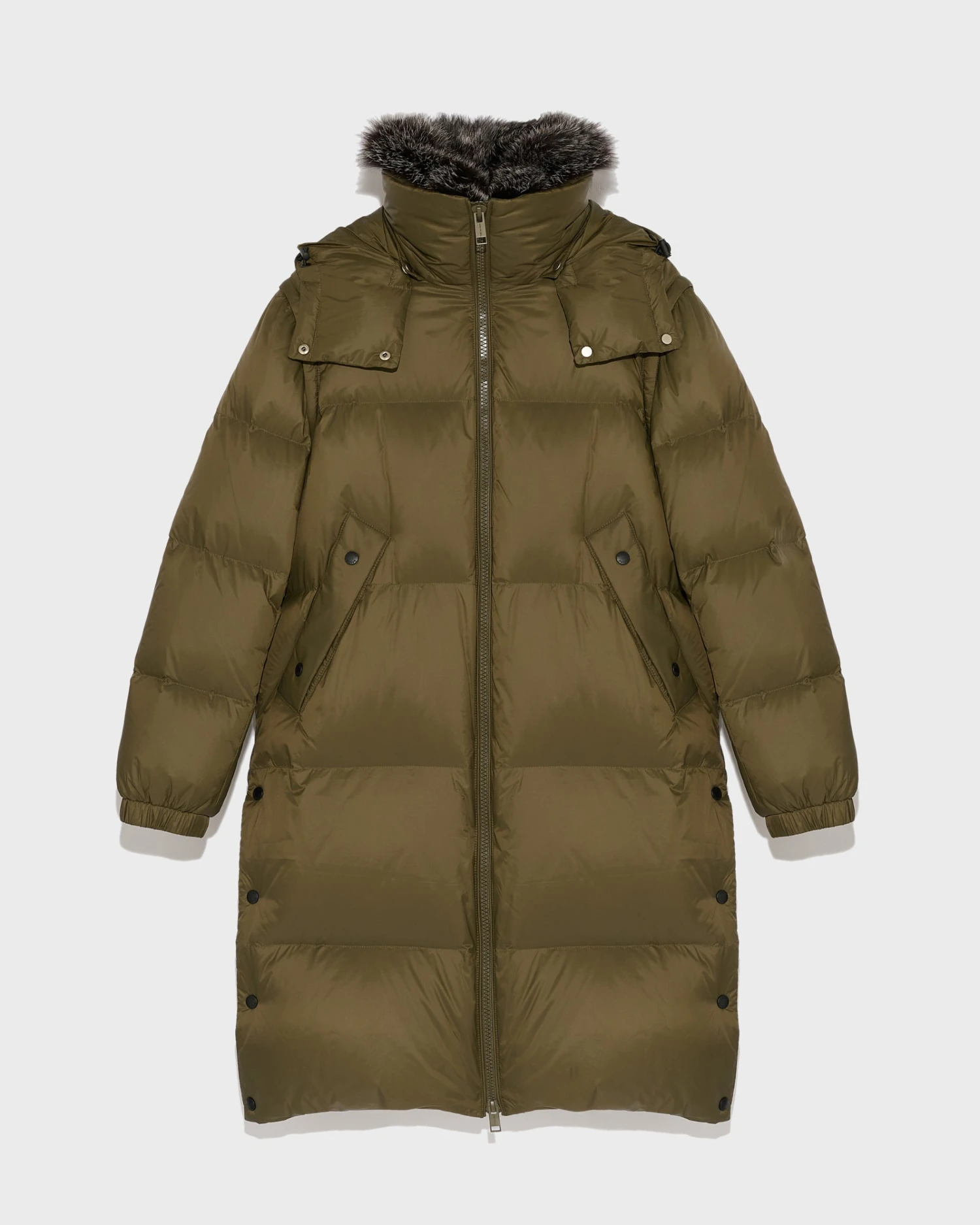 – Doudoune en tissu technique water-repellent garnie de plumes et de duvet haute qualité