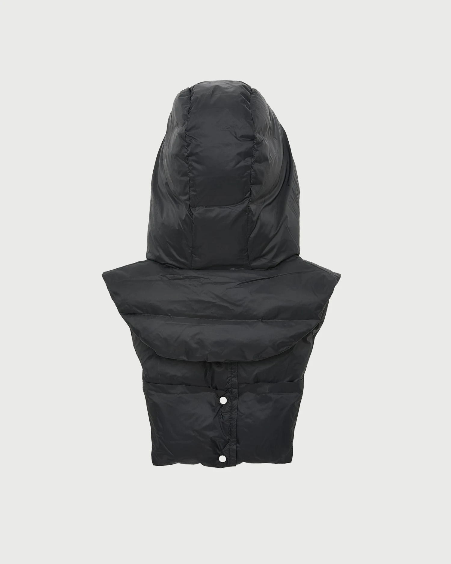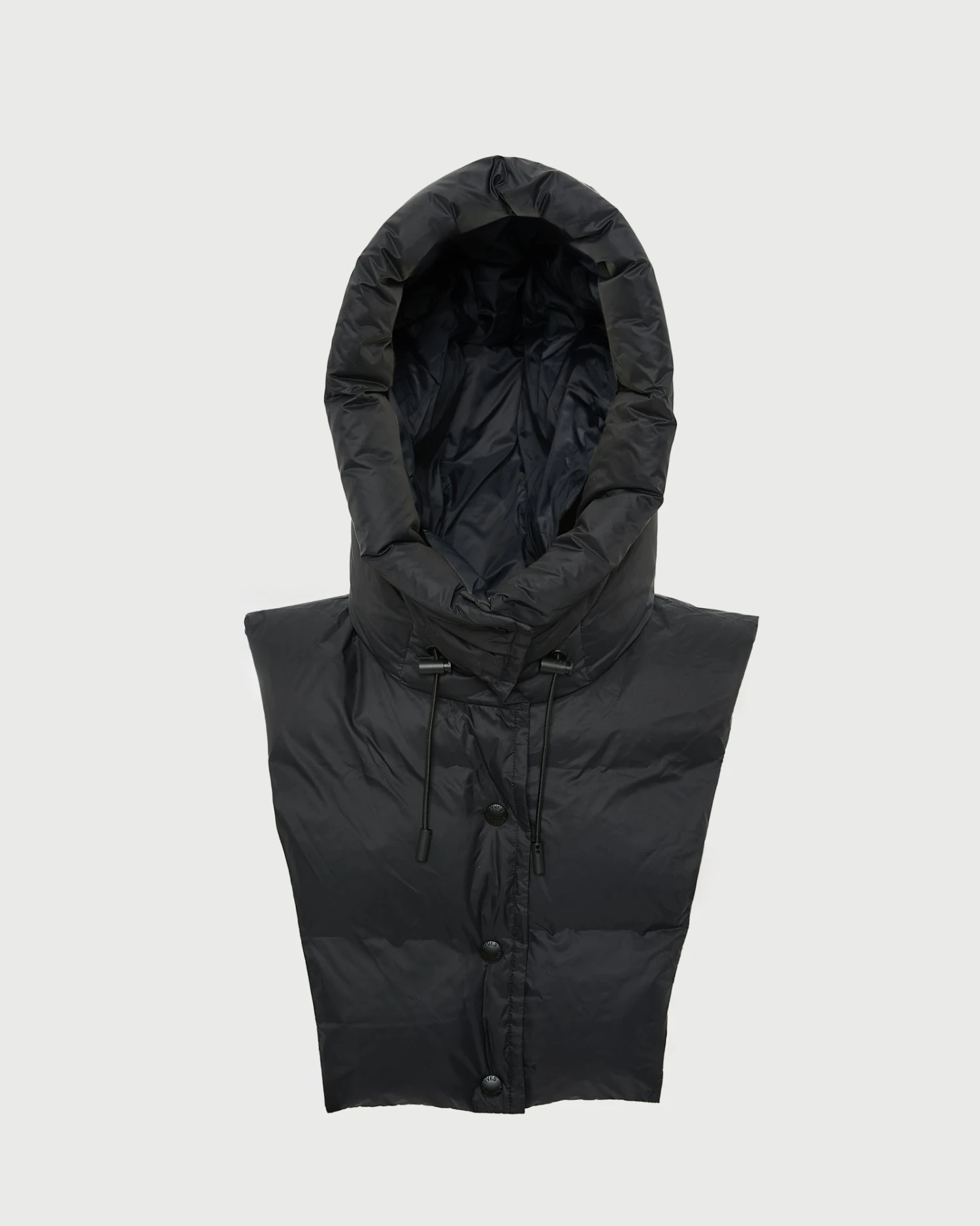 L’iconique doudoune se transforme en un accessoire au style affirmé. Confectionné en tissu technique déperlant et garni de duvet et de plumes de canard de haute qualité pour garantir confort, chaleur et respirabilité, ce plastron à capuche est doté d’un cordon de resserrage et d’une fermeture par bouton-pression. À la fois léger, fonctionnel et ultra-pointu, il se mélange et s’accorde facilement aux autres pièces de la collection pour créer une silhouette nouvelle et une allure résolument moderne.