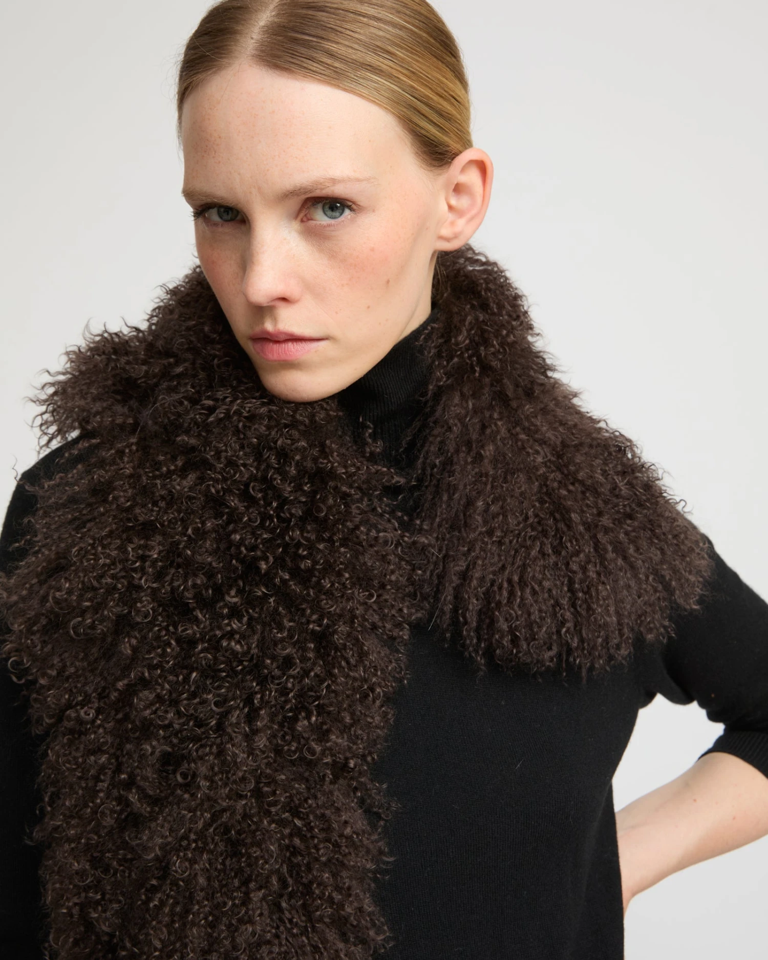 La douceur absolue de l’agneau de Mongolie et son poil long à la texture unique font de cette écharpe un accessoire aussi ludique qu’agréable à porter. La touche finale pour apporter peps et chaleur à vos tenues hivernales.