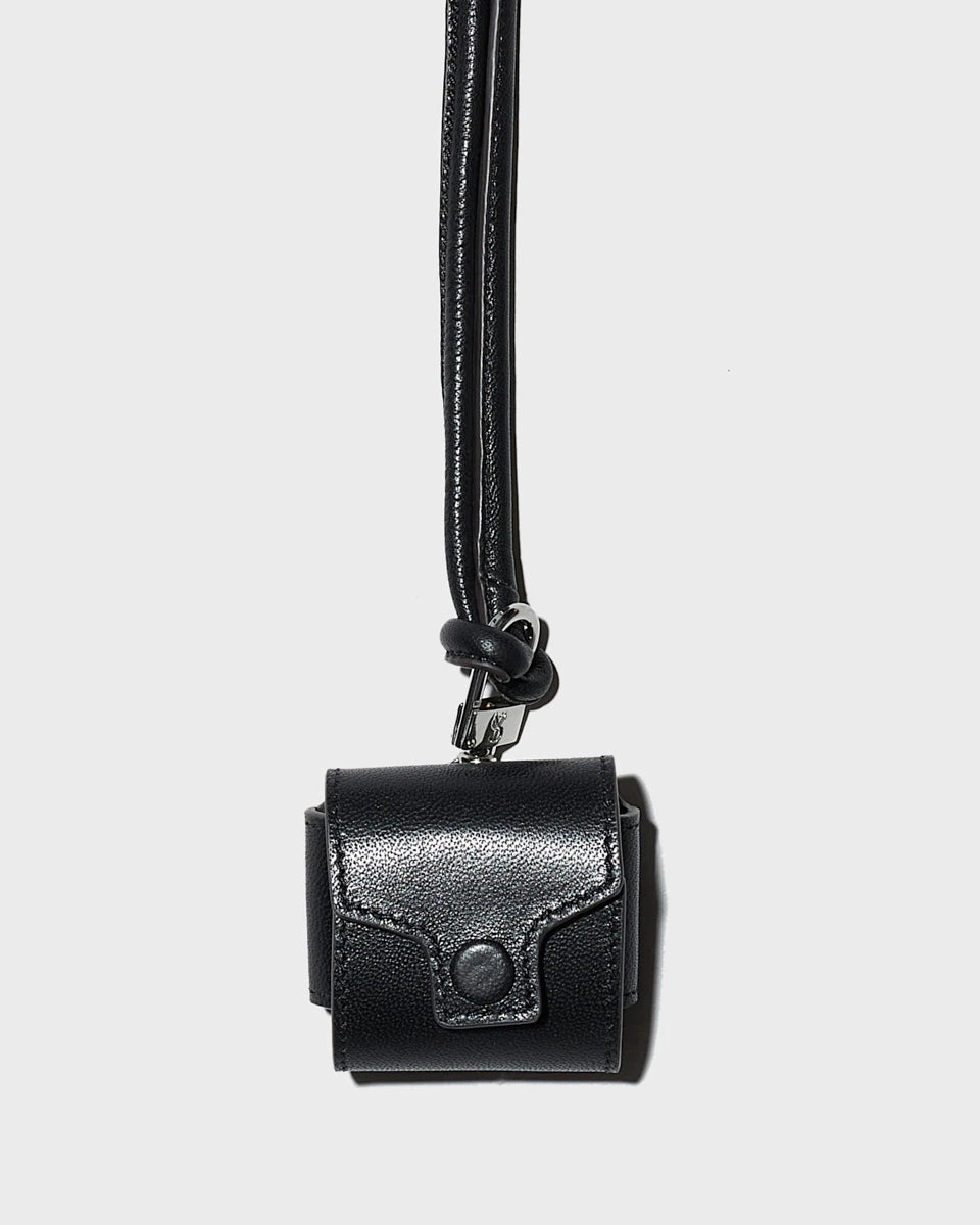 À la fois fonctionnel et élégant, cet étui est confectionné en cuir d’agneau avec une ouverture par un bouton pression également recouvert de cuir. Grâce à un système d’élastiques dissimulés sur les côtés, ce modèle est universel et compatible avec les différentes tailles d’AirPods. Doté d’un cordon en cuir ajustable et amovible, le mousqueton métallique sur l’étui permet de l’accrocher à un sac ou passant de ceinture pour multiples les porter et s’adapter à tous les styles.
