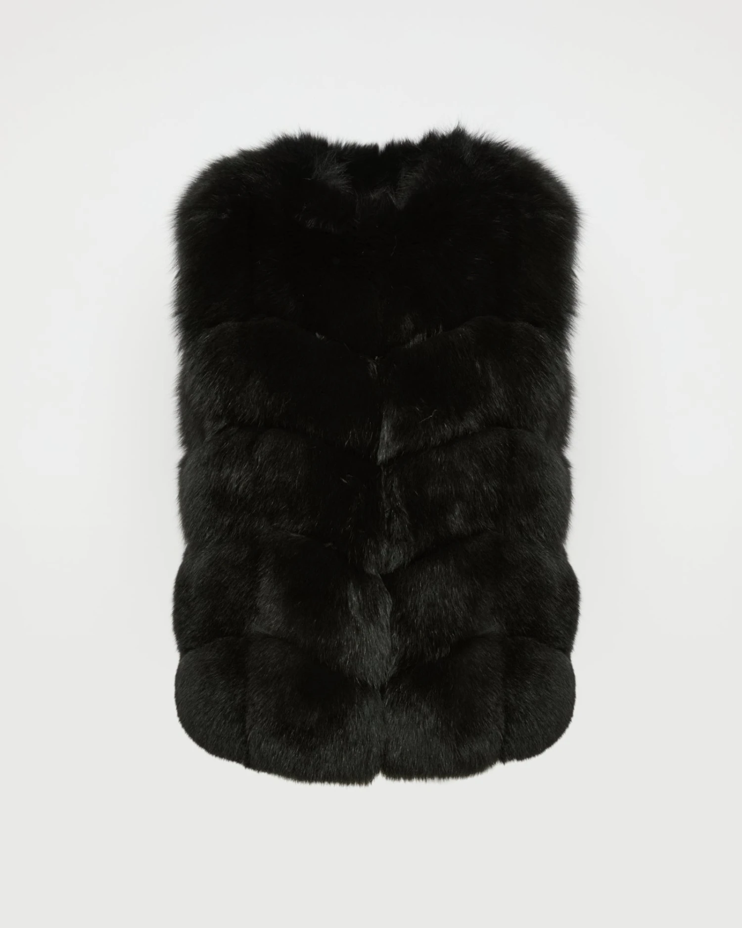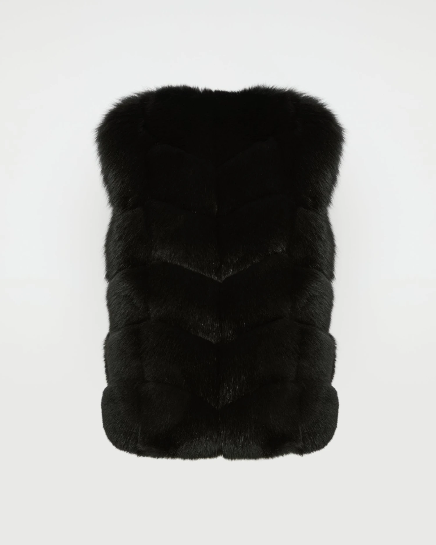Une nouvelle interprétation du gilet sans manches pour une allure résolument moderne et un style affirmé. Doté de deux poches fentes, d’une fermeture par crochets et d’une doublure fluide et agréable en soie, ce modèle est confectionné en fourrure de renard travaillée en chevron. Une technique réalisée par les Ateliers Yves Salomon pour donner du relief et un aspect graphique à cette pièce légère, élégante et versatile.