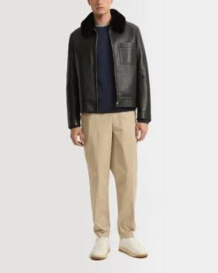 Veste En Cuir Avec Col En Peau Lainée