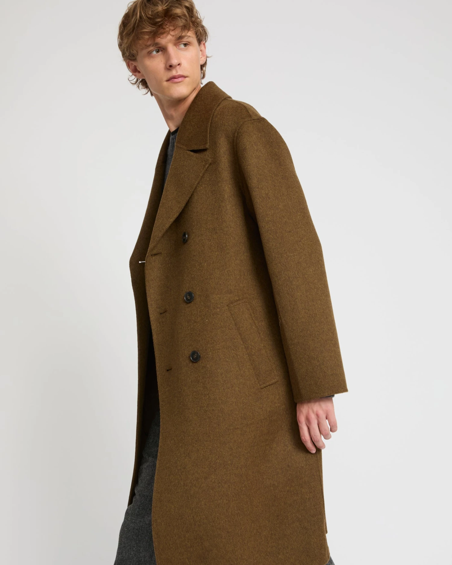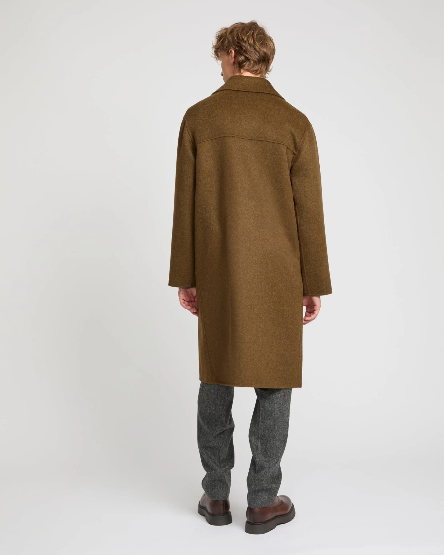 Inspiration caban pour cet élégant manteau long en matière laine et cachemire double-face. Sa fermeture à double boutonnage cache un intérieur doublé en matelassage pour plus de chaleur. Avec son style intemporel, c’est une pièce incontournable du vestiaire masculin, conférant une prestance immédiate.