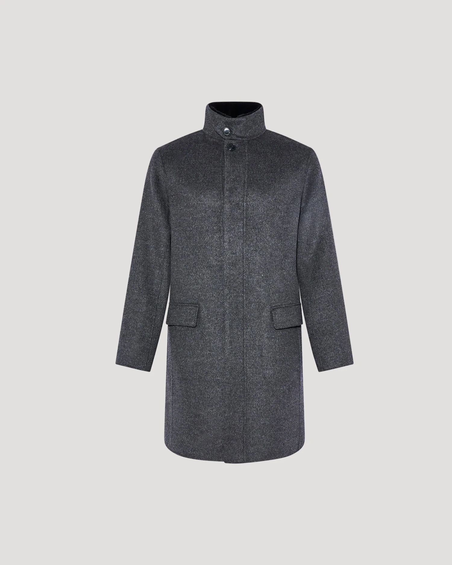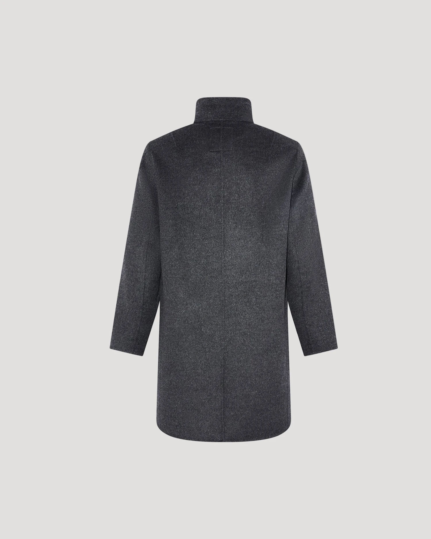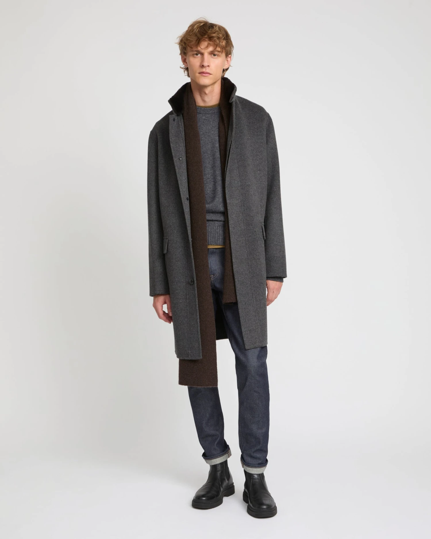 Avec sa fermeture simple boutonnage sous patte et son col montant, ce manteau en lainage double-face évoque l’élégance masculine classique. Un intérieur de col amovible en fourrure de vison rasé apporte sa touche de douceur luxueuse à un modèle intemporel.