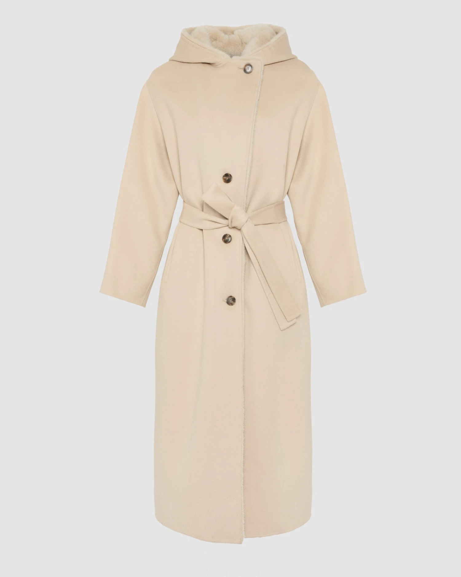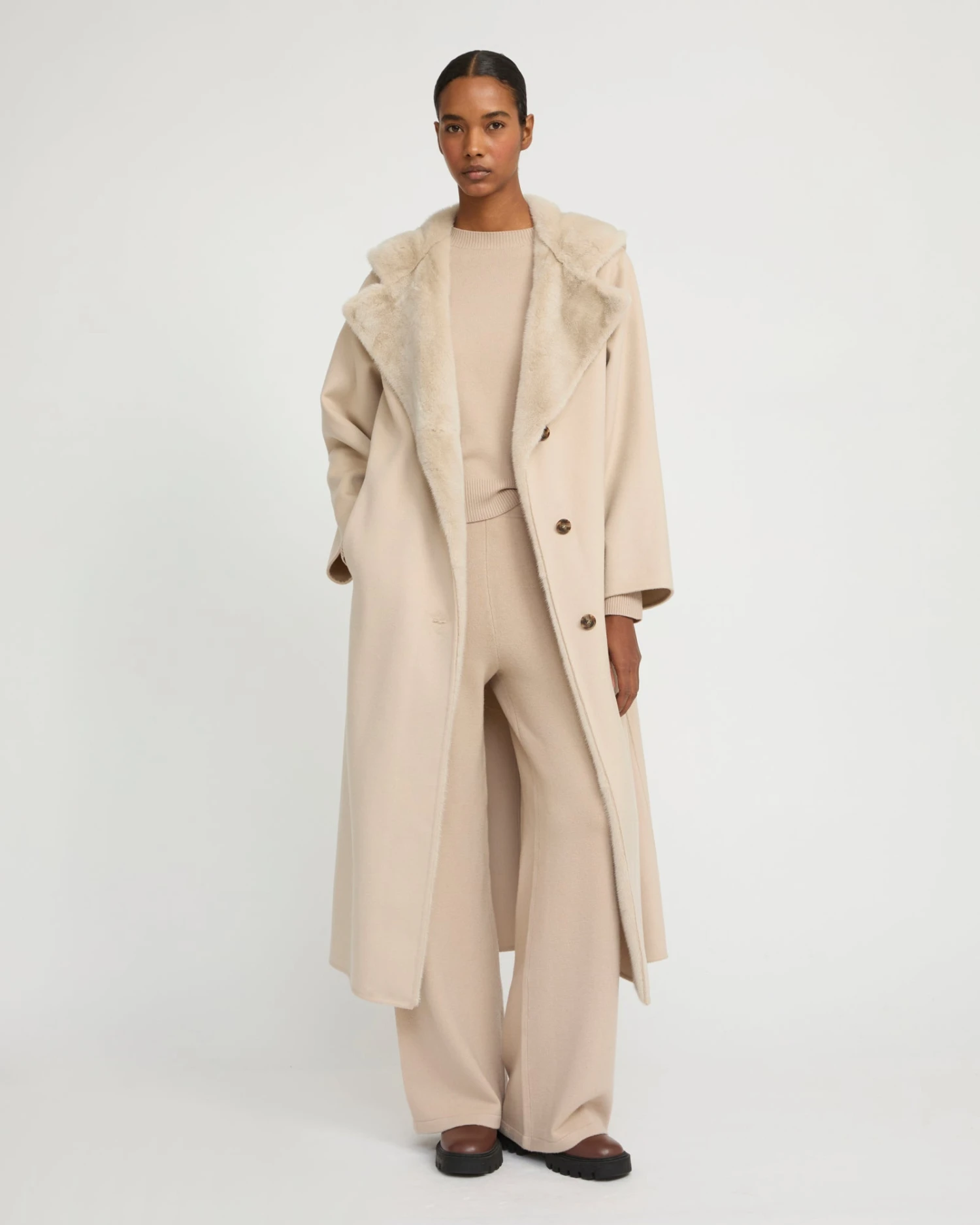 Manteau Long En Lainage Cachemire Et Fourrure De Vison