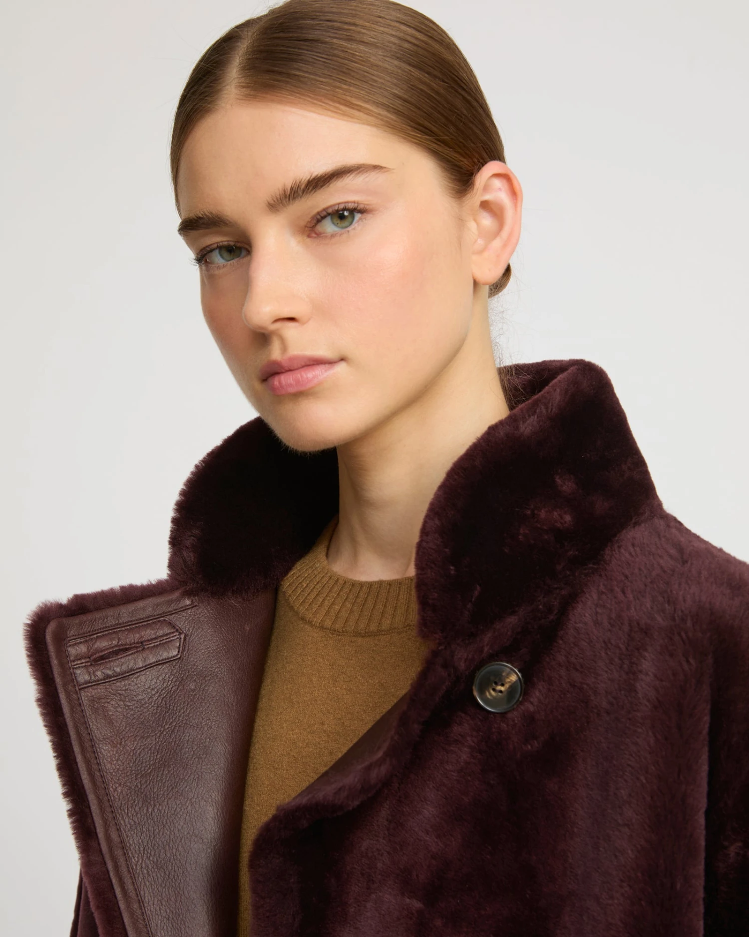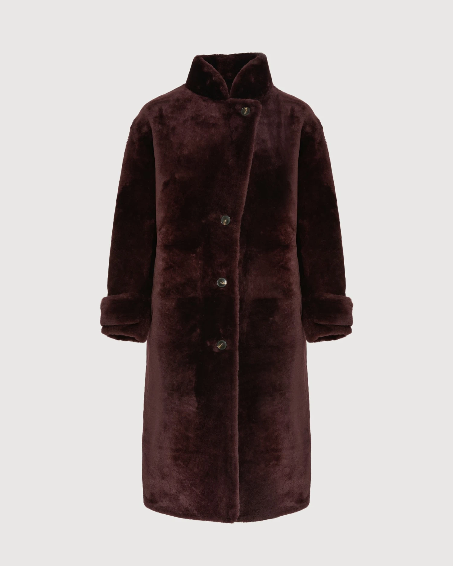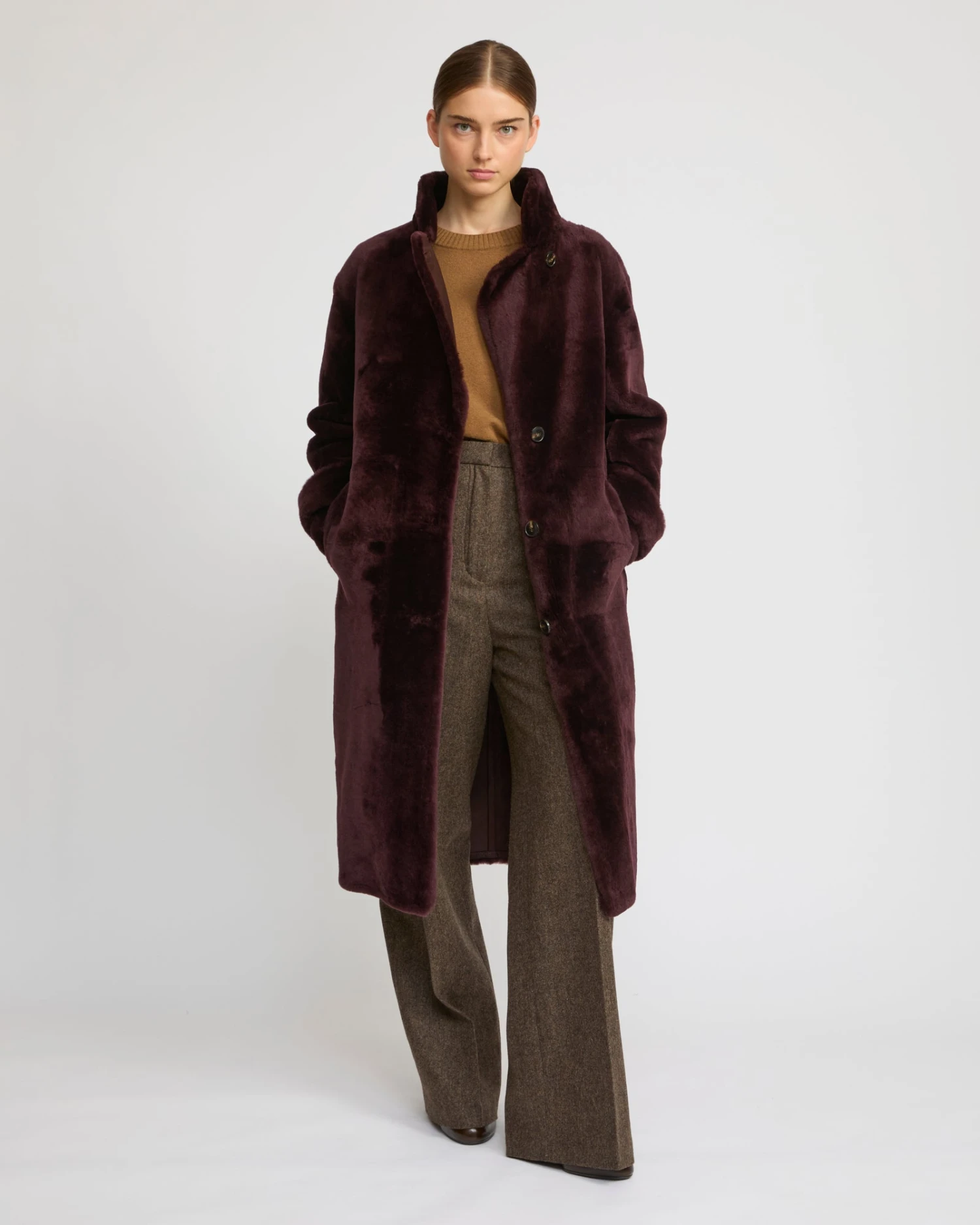 Une nouvelle interprétation du traditionnel manteau officier. Dotée d’un col montant, de boutons contrastés et de pattes boutonnées en bas de manches, cette nouvelle version transpose les codes de ce classique intemporel sur une matière plus féminine et un coloris plus actuel. Confectionné en agneau mérinos, ce manteau long d’hiver à la fois chaud et enveloppant offre une silhouette élégante et contemporaine.