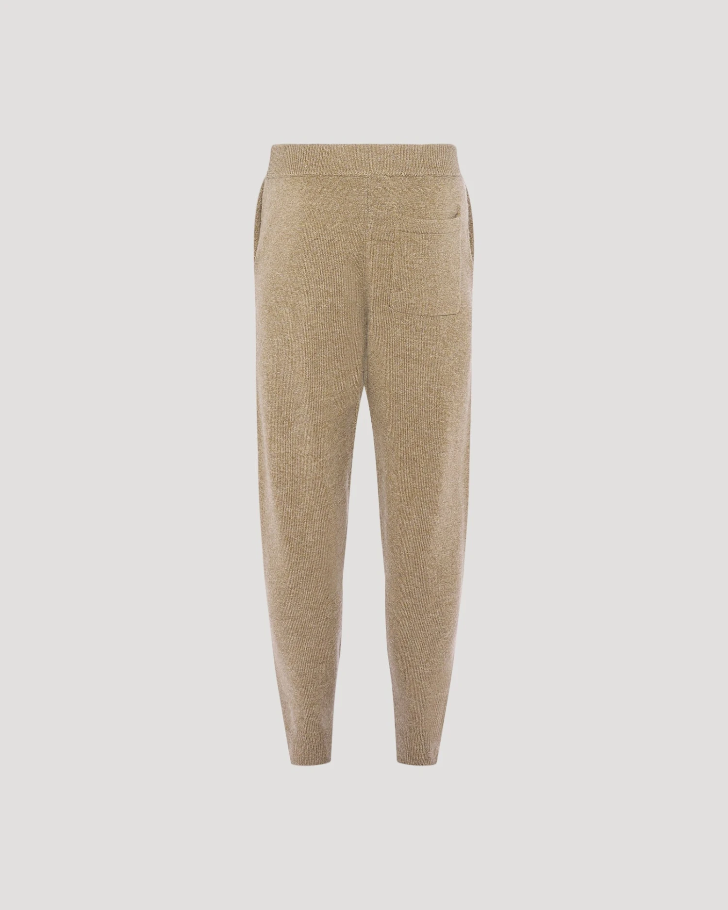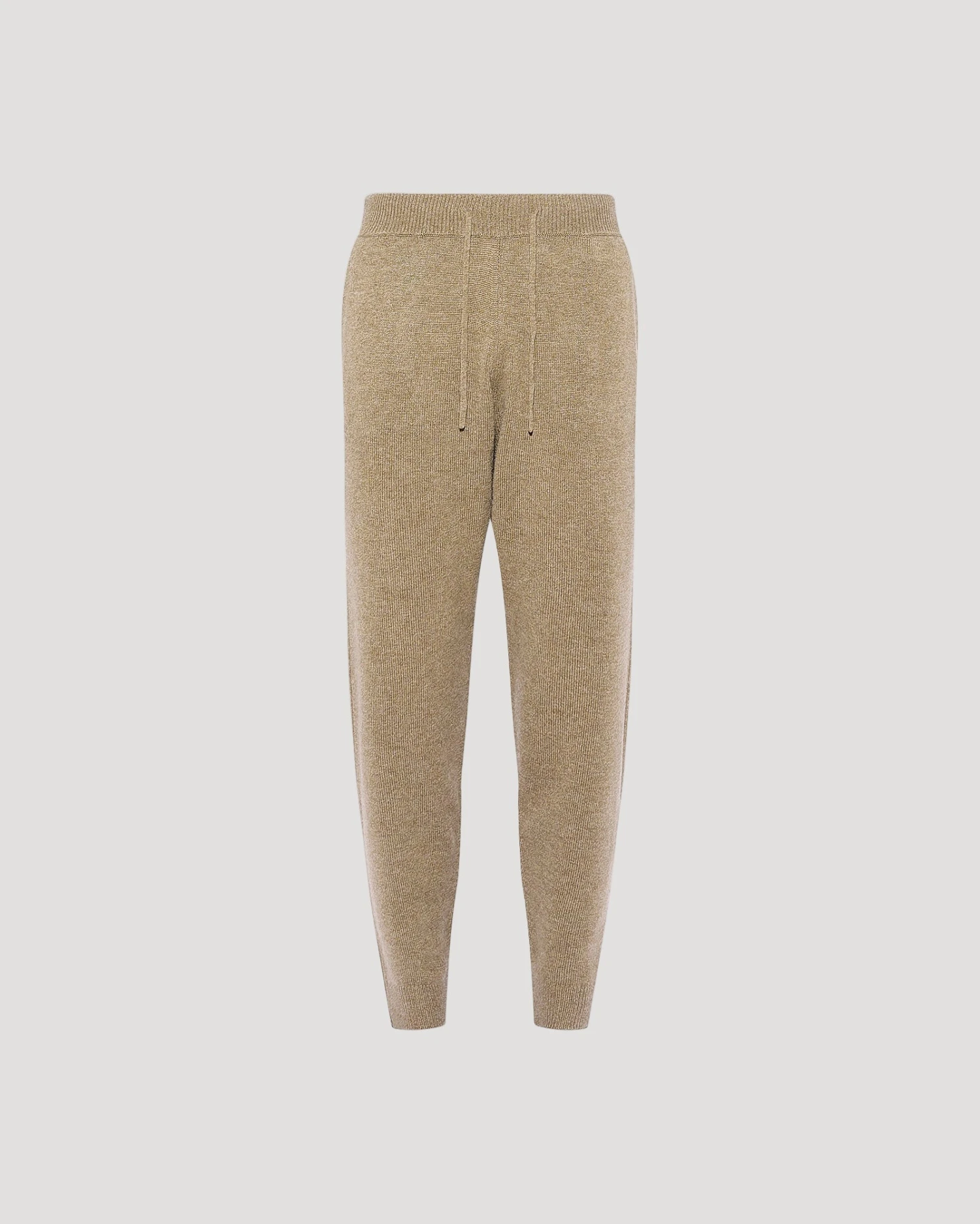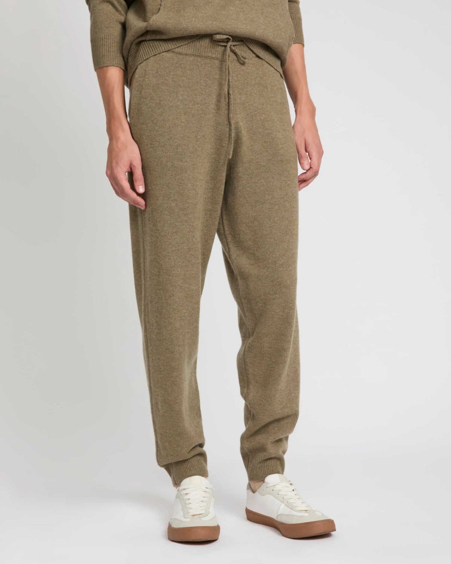 Rencontre du pantalon de jogging et d’une maille douce en mélange laine et cachemire, pour une décontraction qui reste sophistiquée.