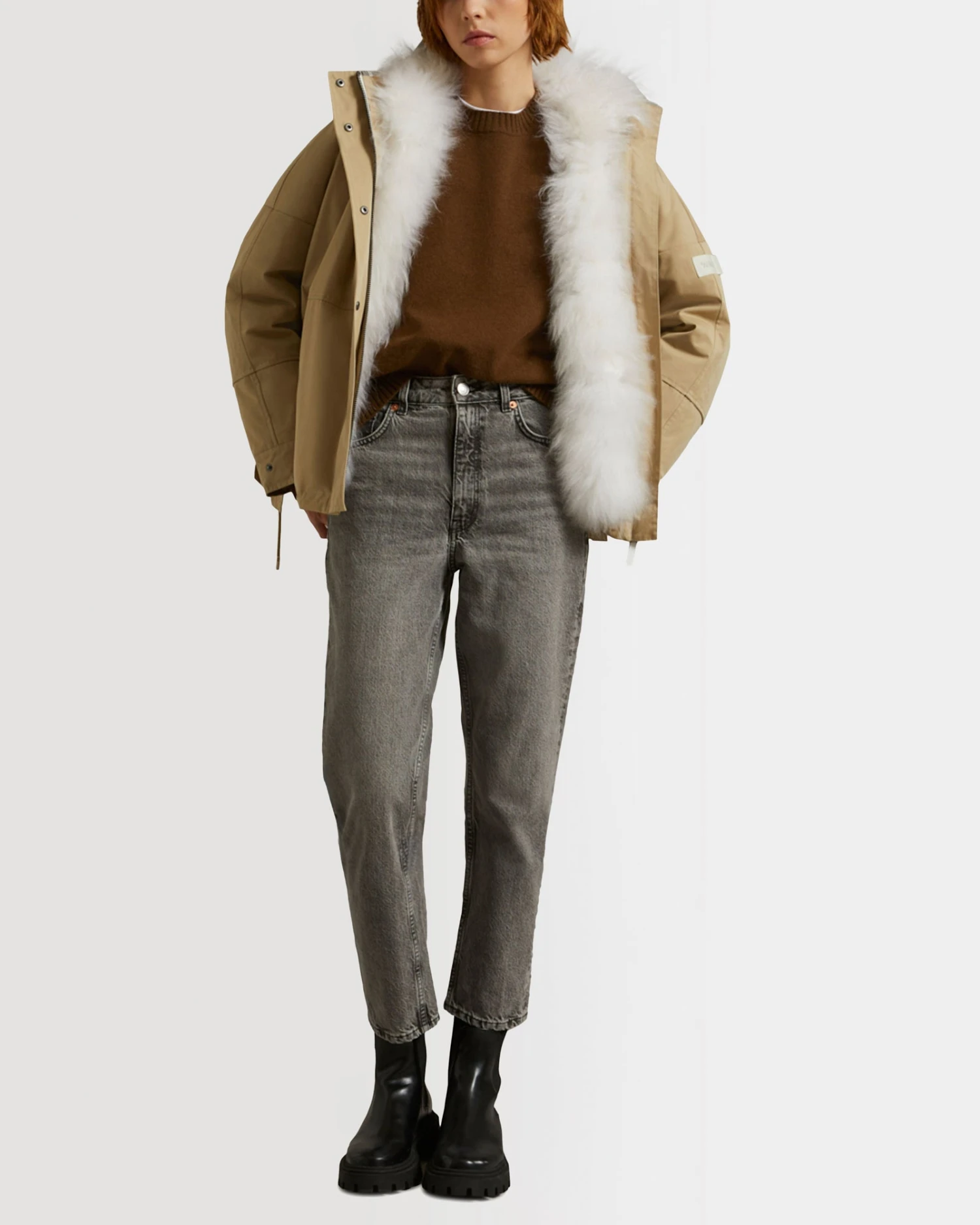 Une parka d’hiver réversible et versatile qui évolue selon les styles et la saison. Les détails de conception comprennent une fermeture par zip et boutons-pression invisibles, deux poches basses à rabat et des pattes en bas de manches. Des liens de resserrage au niveau de la capuche, de la taille et sur le bas du vêtement ainsi que les fentes côtés pressionnées permettent d’ajuster la coupe et de dessiner une nouvelle silhouette. Résistant aux intempéries, ce modèle est en coton mélangé et sa doublure est amovible. Confectionnée en agneau galonné de cuir velours, les manches sont en doudoune garnie de plumes et duvet pour garantir chaleur et respirabilité. Un détail qui permet de multiplier les portés pour traverser l’hiver avec aisance et avec style.