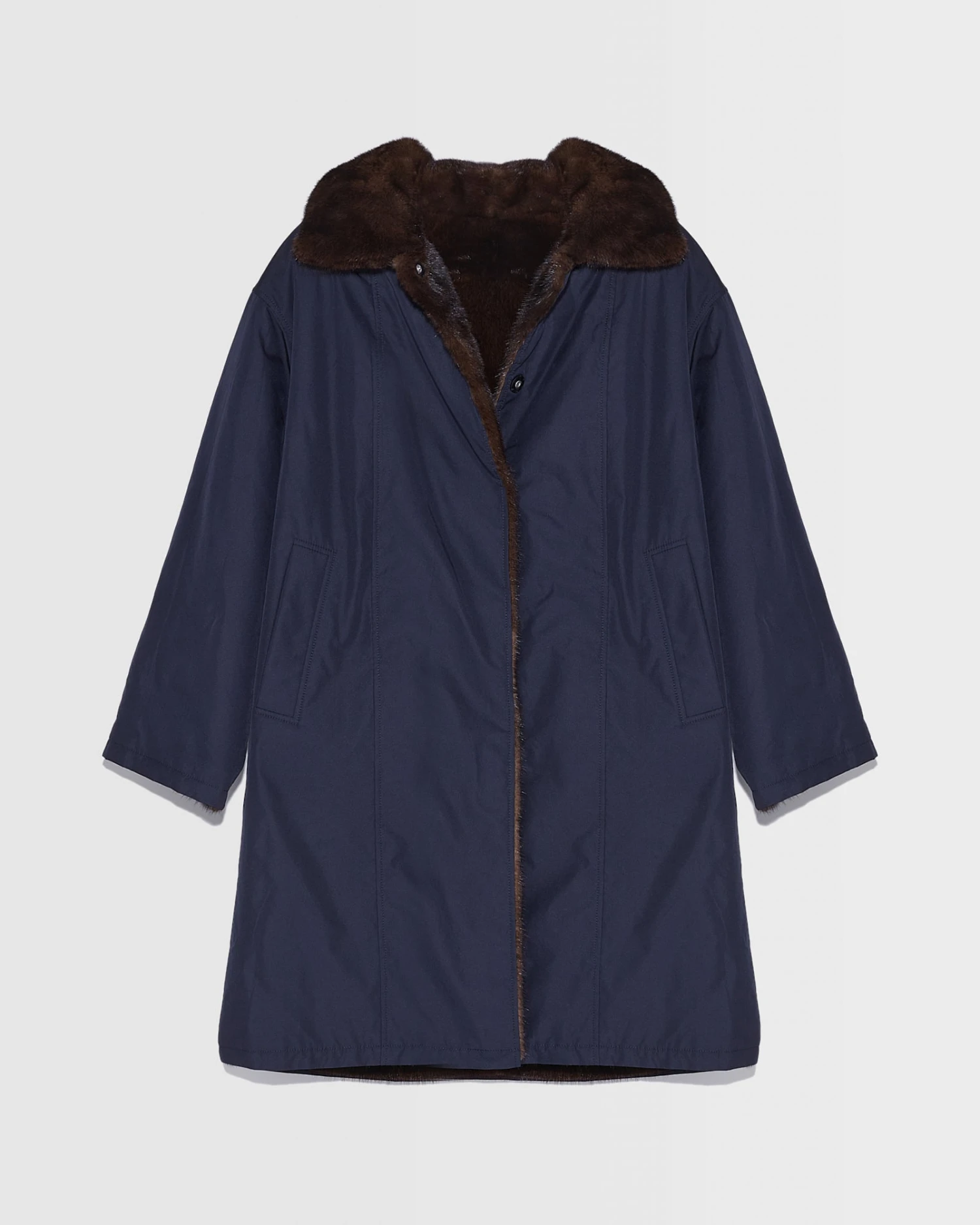– Modèle réversible, un côté tissu technique et l’autre côté en fourrure de vison long poil