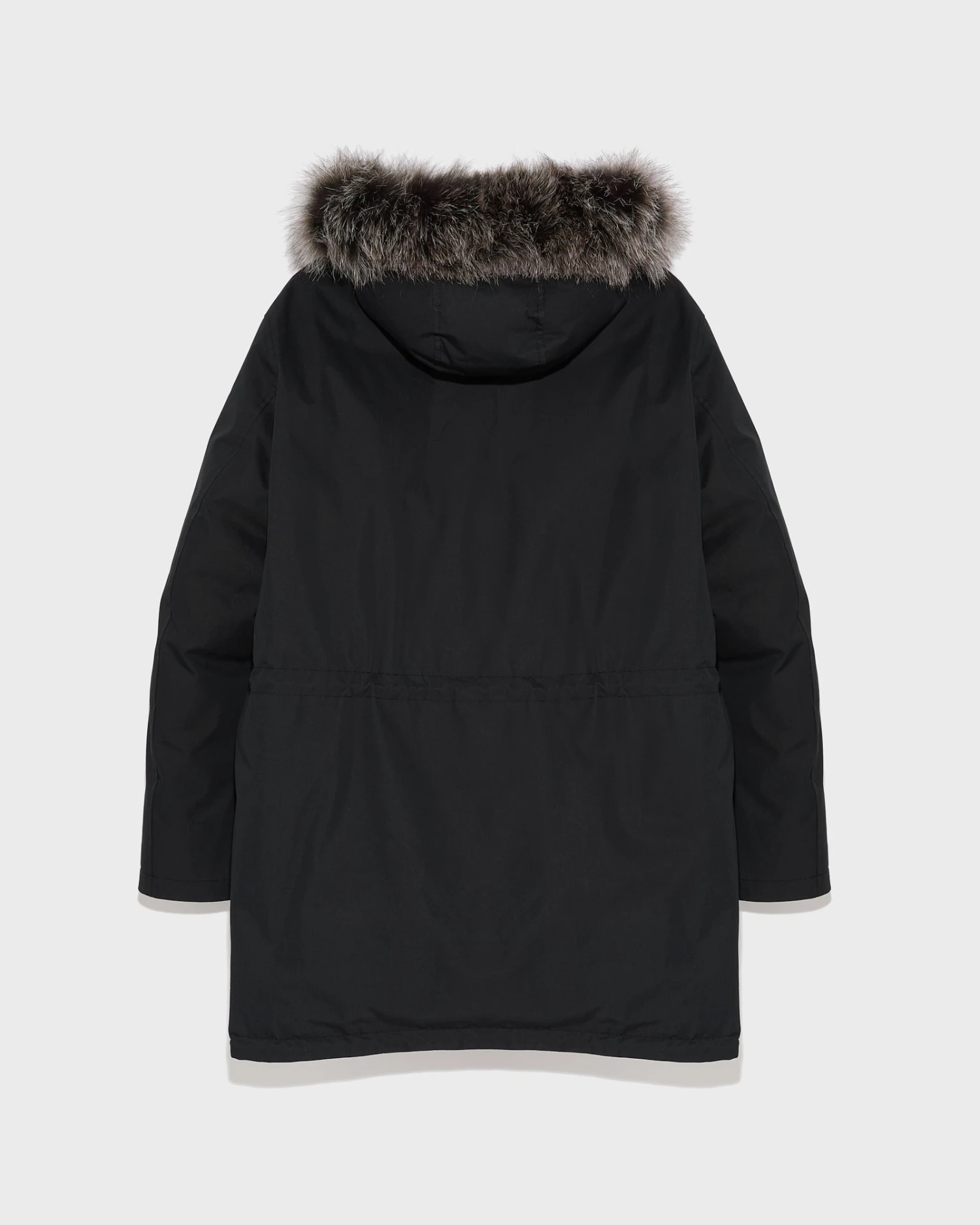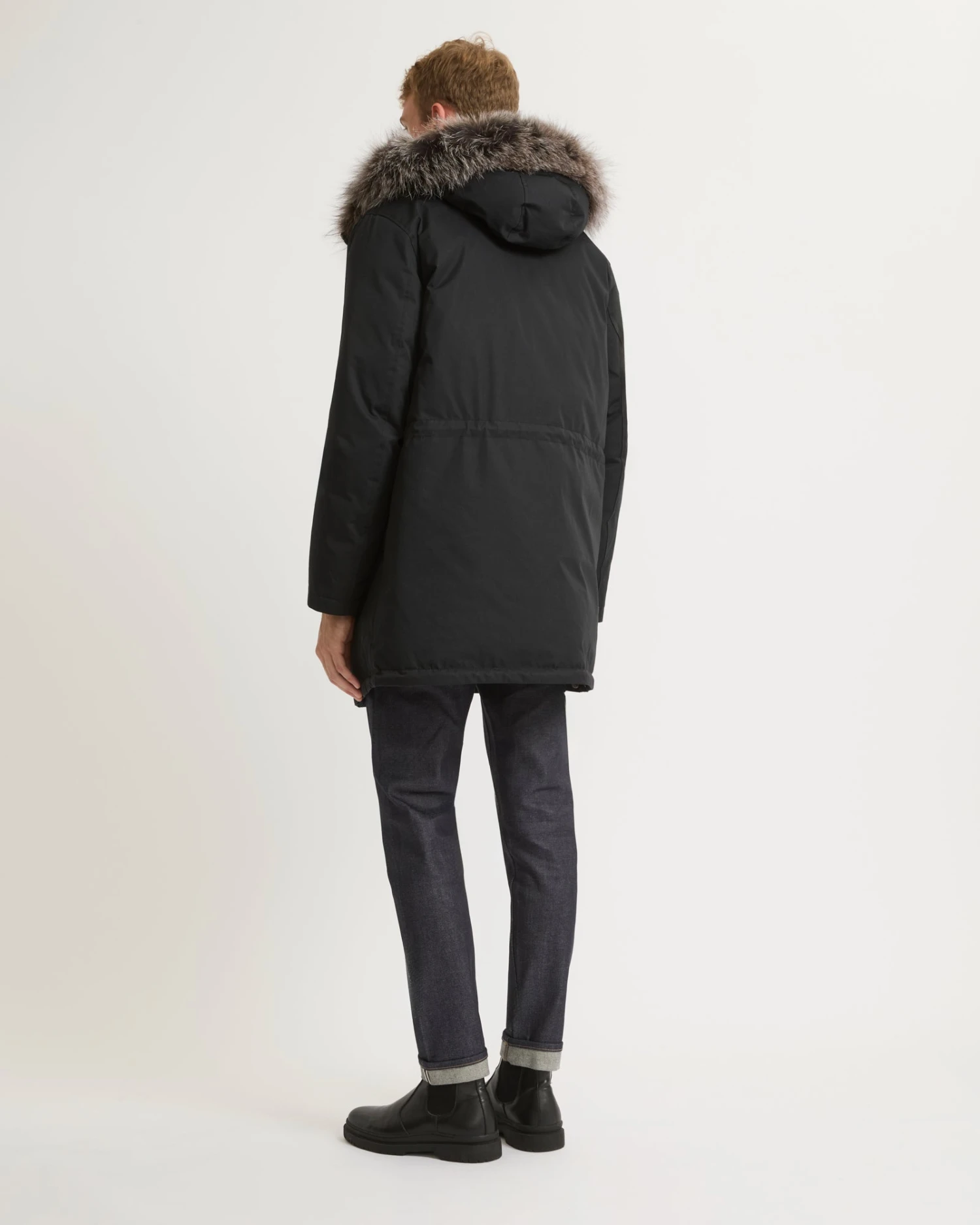 Cette parka iconique allie style et élégance. Son tissu en coton technique résistant aux intempéries cache une doublure façon doudoune pour plus de chaleur. La bordure en renard de la capuche se retire pour plus de versatilité. Un cordon de serrage permet d’ajuster la taille, et la double fermeture zip + boutonnage offre une protection supplémentaire aux courants d’air.