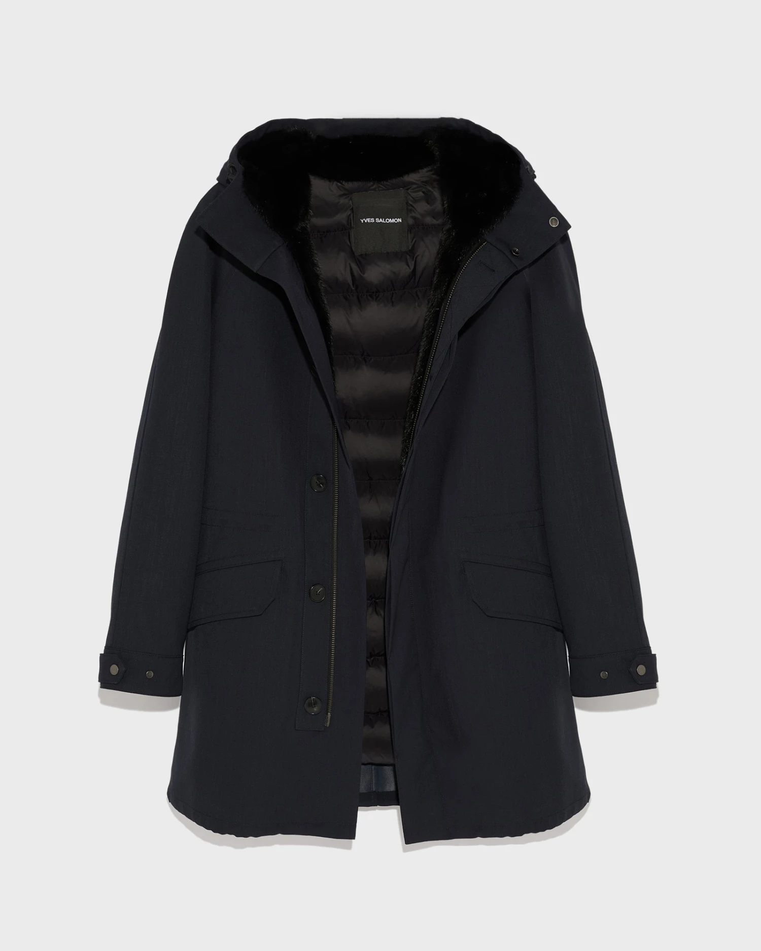 Versatilité, chaleur et élégance pour une parka longue aux formes classiques, travaillée dans un lainage technique résistant au temps comme aux intempéries. Une première doublure amovible en duvet de haute qualité s’ajoute à une doublure capuche et bande avant en vison long poil soyeux, pour une touche luxueuse supplémentaire.