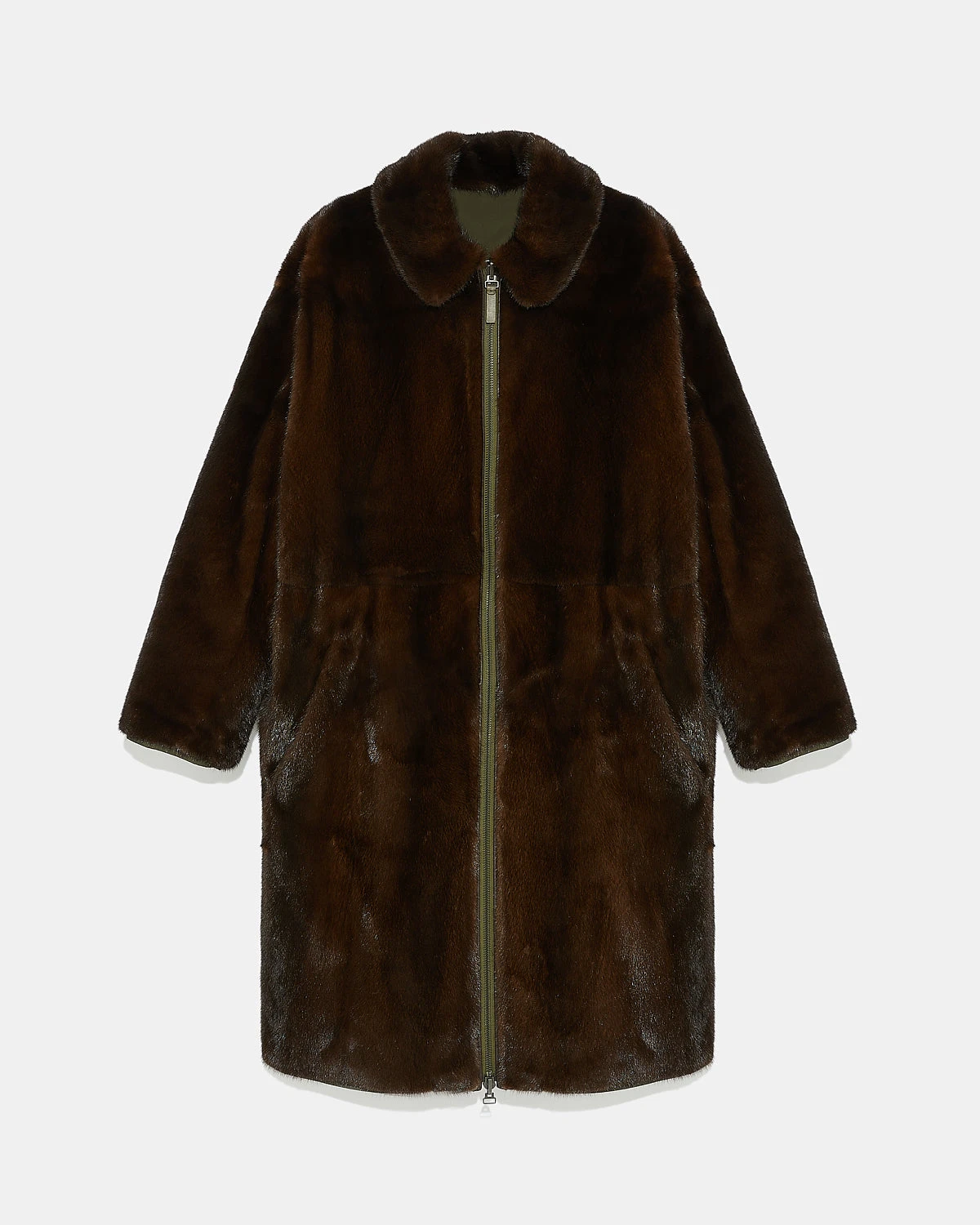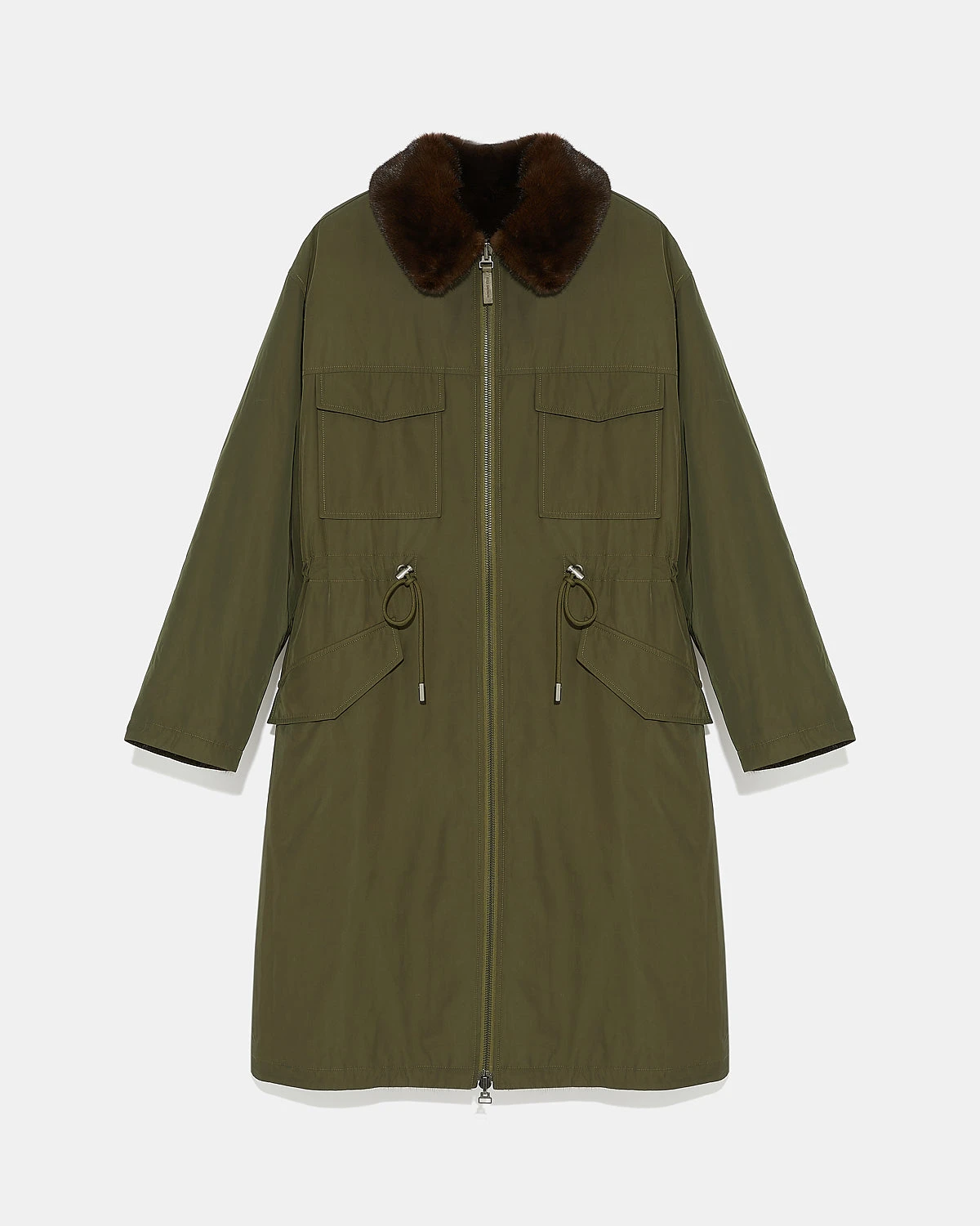 Parka style trench en tissu technique twill water-repellent réversible avec fourrure de vison