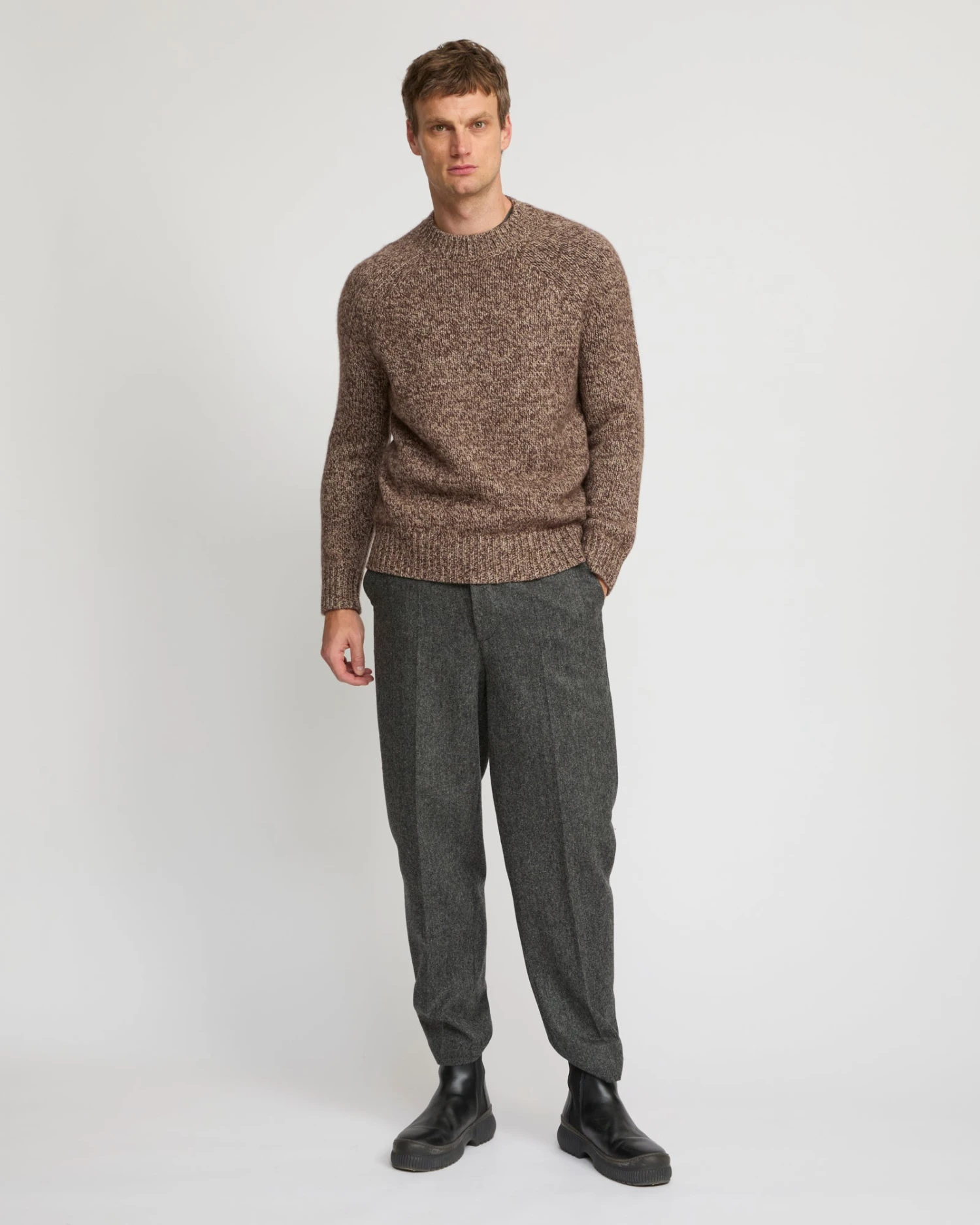 L’indispensable pull en cachemire à col rond, avec une coupe près du corps en maille épaisse. À porter seul ou en superposition.