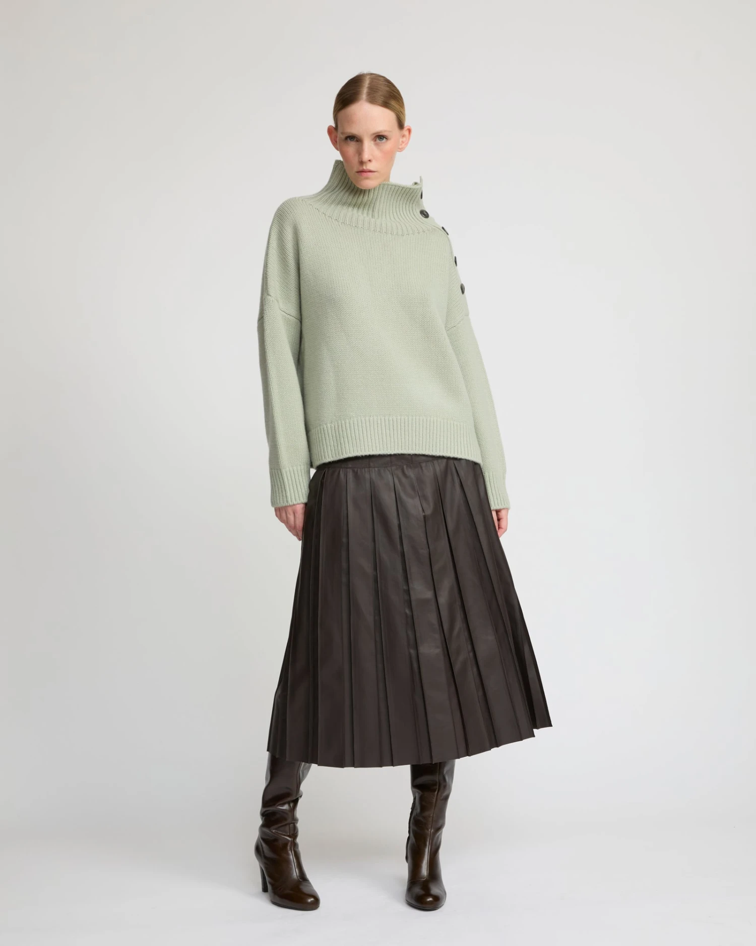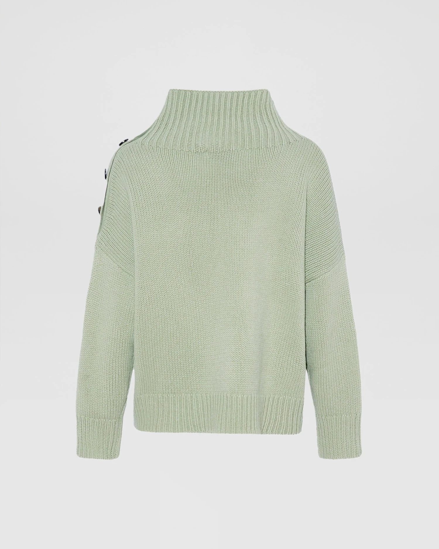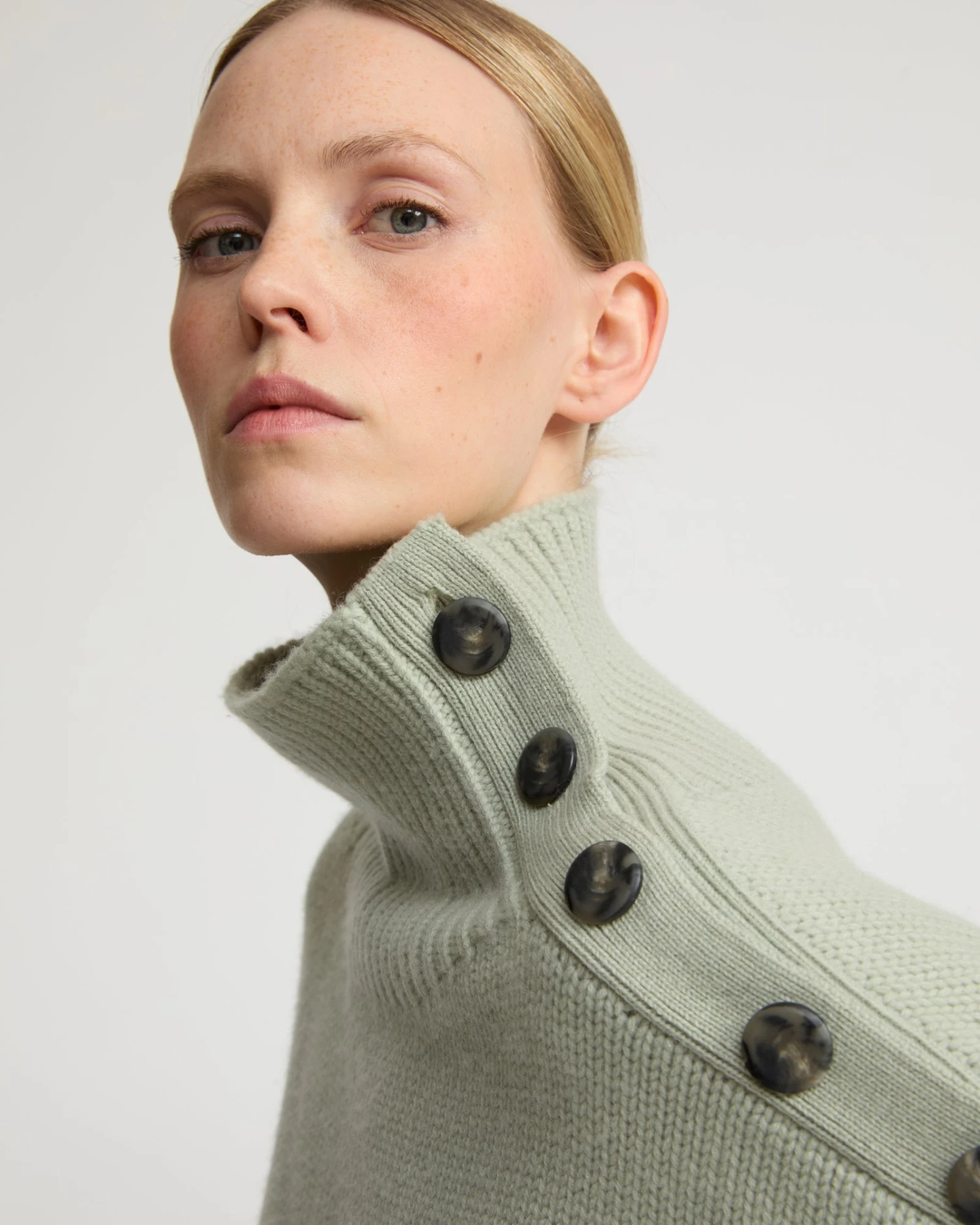Pull en maille lainage cachemire oversize doté d’un col cheminée et de manches longues pour une allure à la fois décontractée et sophistiquée. Confectionné dans un mélange de laine et de cachemire, son style est élégant et intemporel. Sur l’épaule gauche, des boutons permettent de dévoiler un peu de peau et d’allier le confort et la féminité.