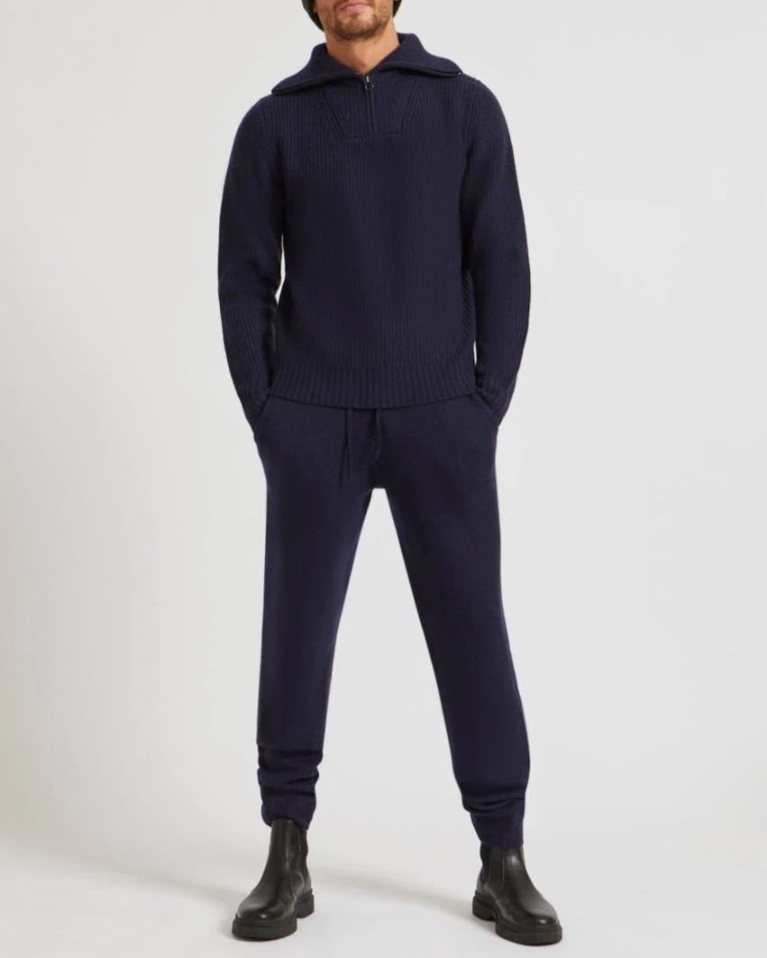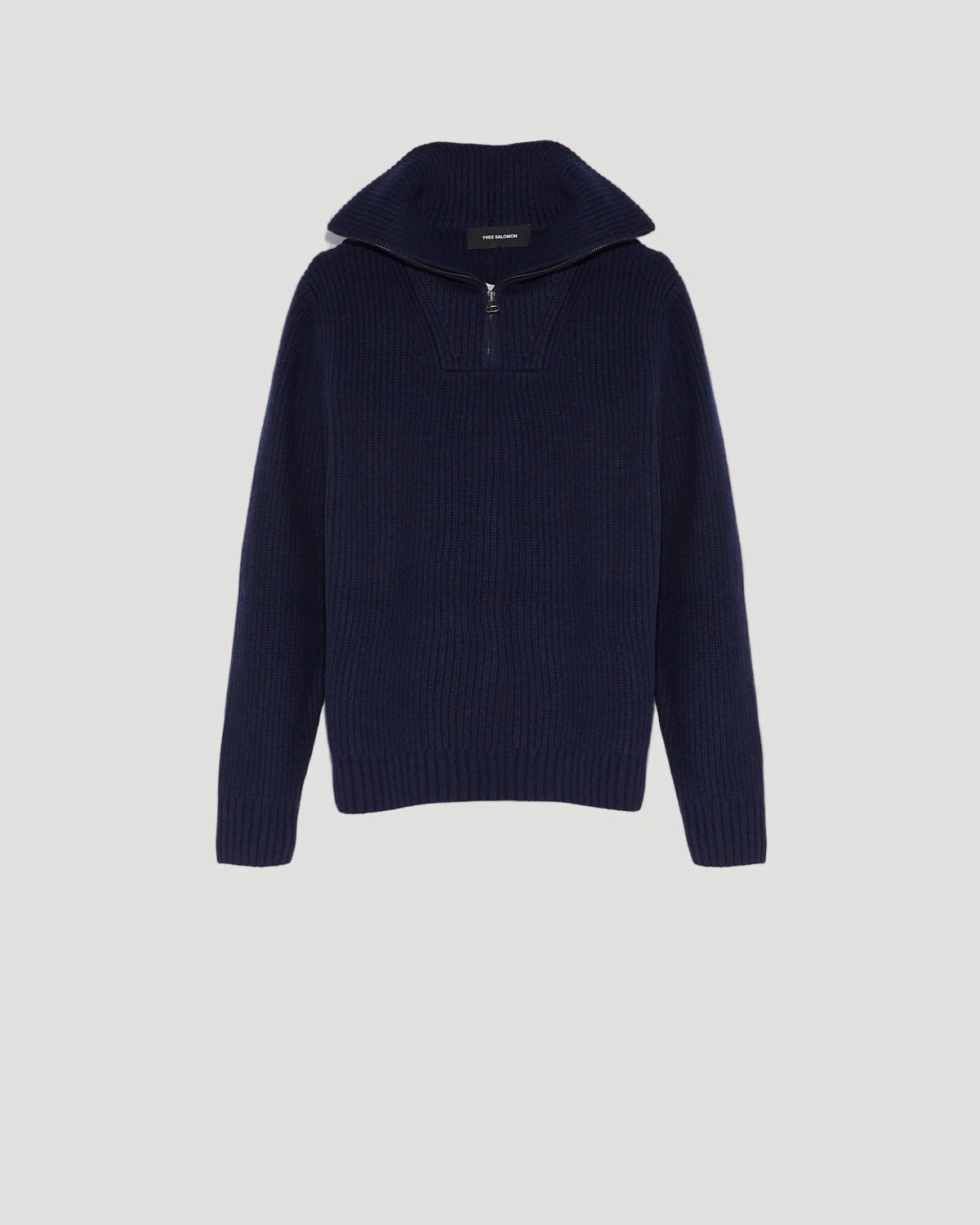 Avec sa maille en lainage cachemire à côtes, sa forme généreuse et son col zippé façon camionneur, ce pull vient se superposer sur une chemise ou un t-shirt pour affronter avec style le climat hivernal.