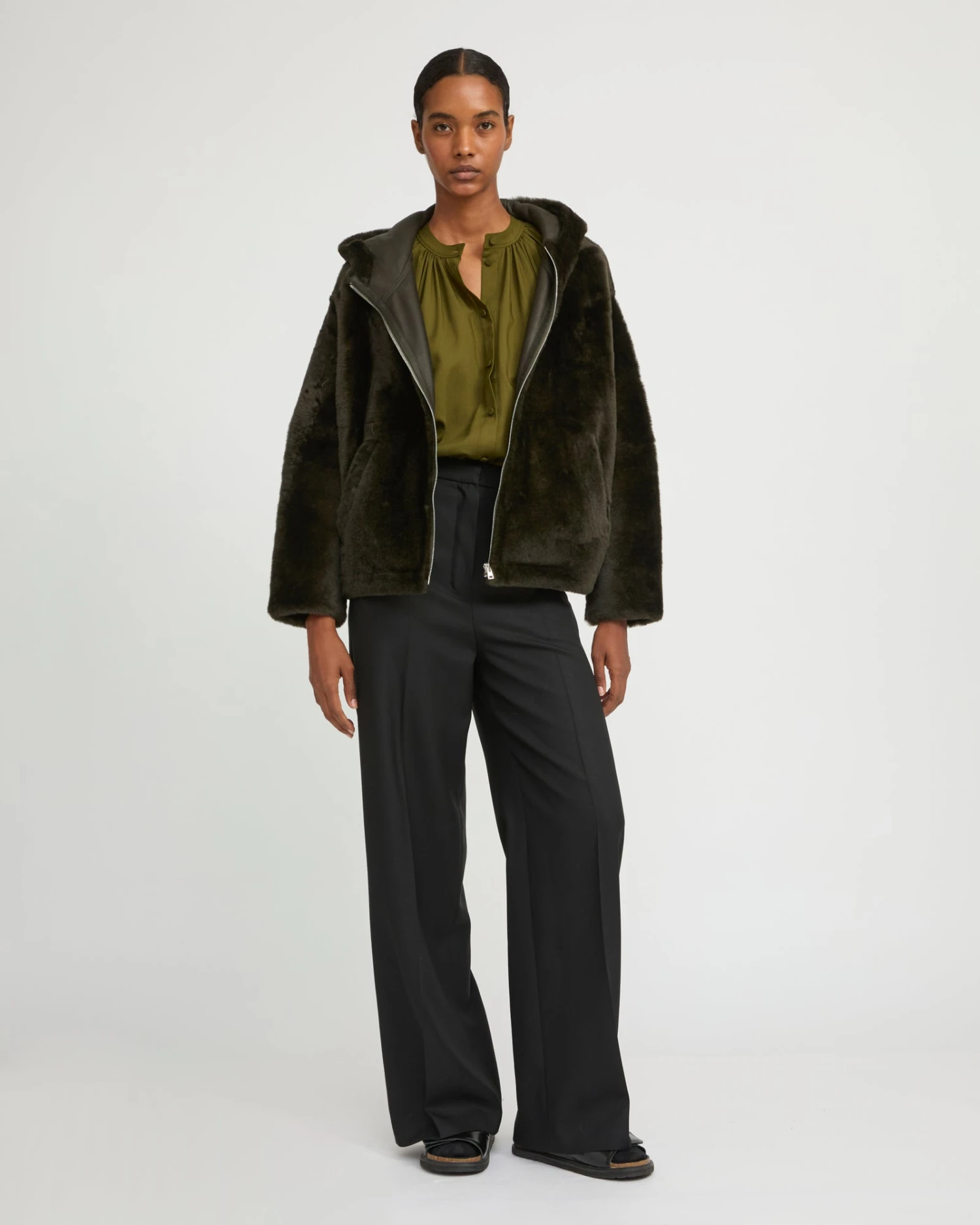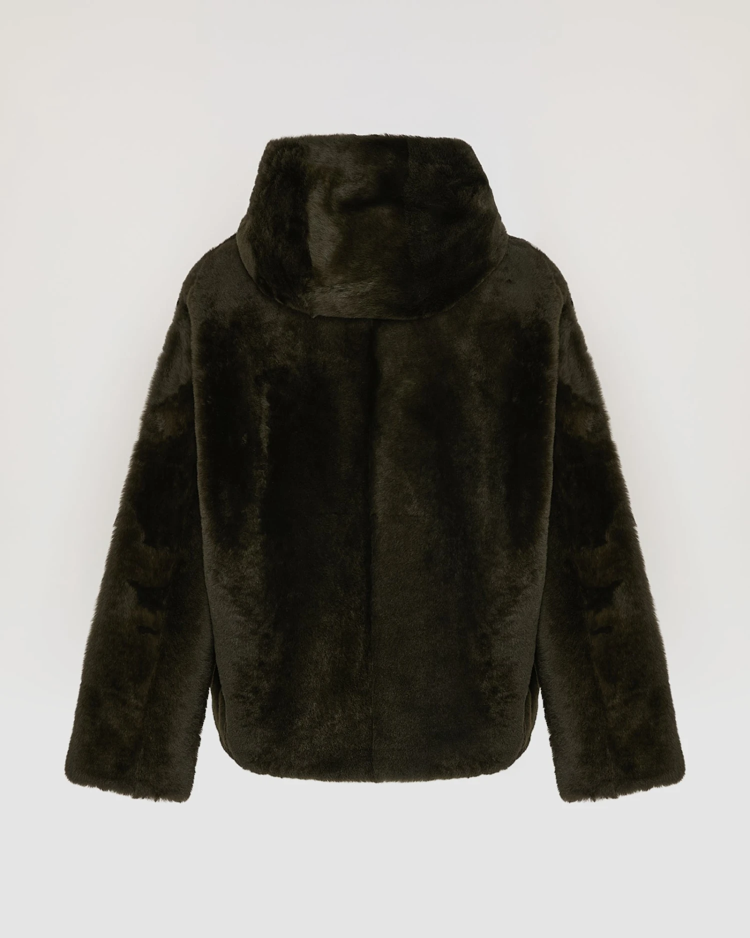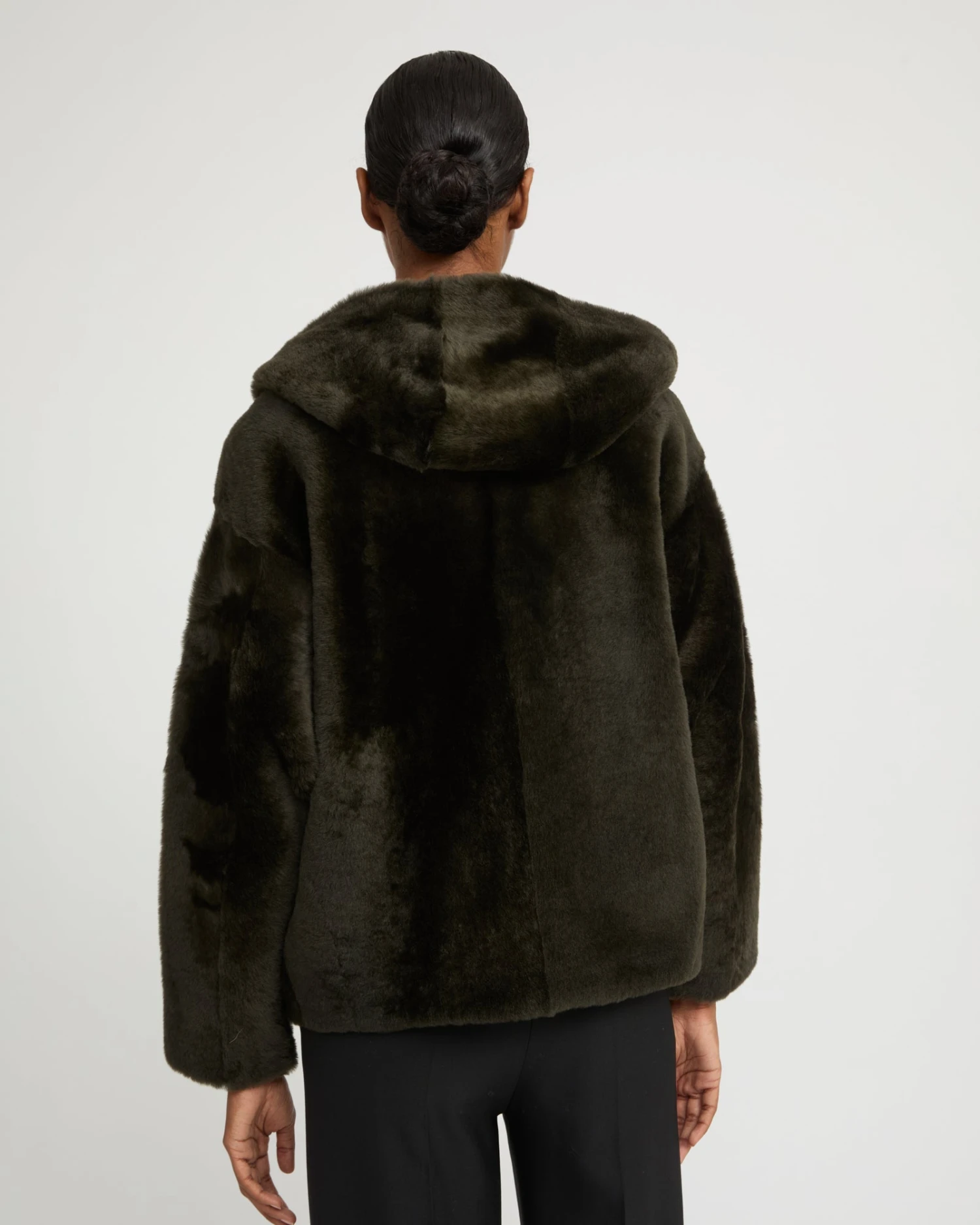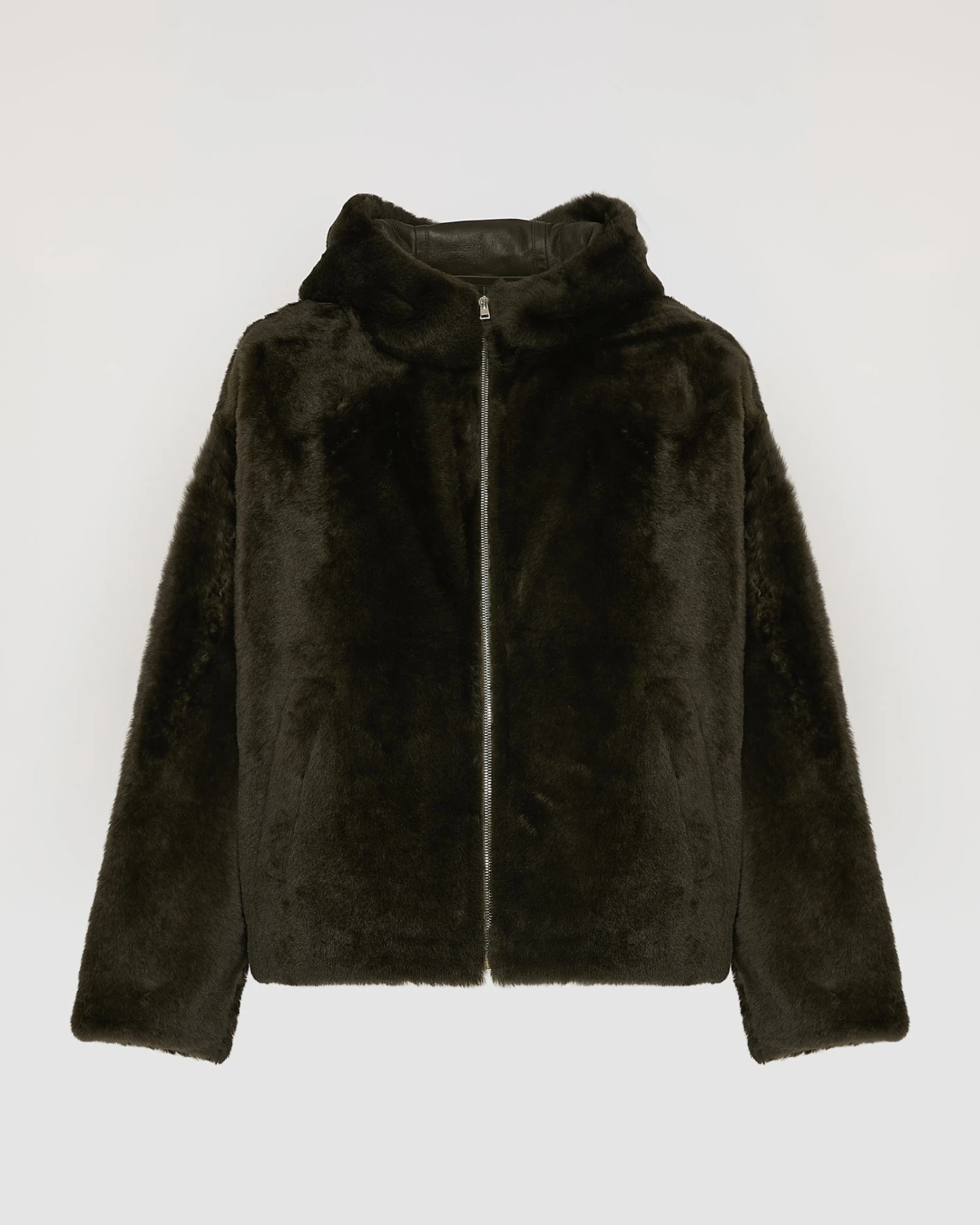 La veste à capuche sportswear réinventée grâce à l’élégance d’une peau lainée incroyablement douce.