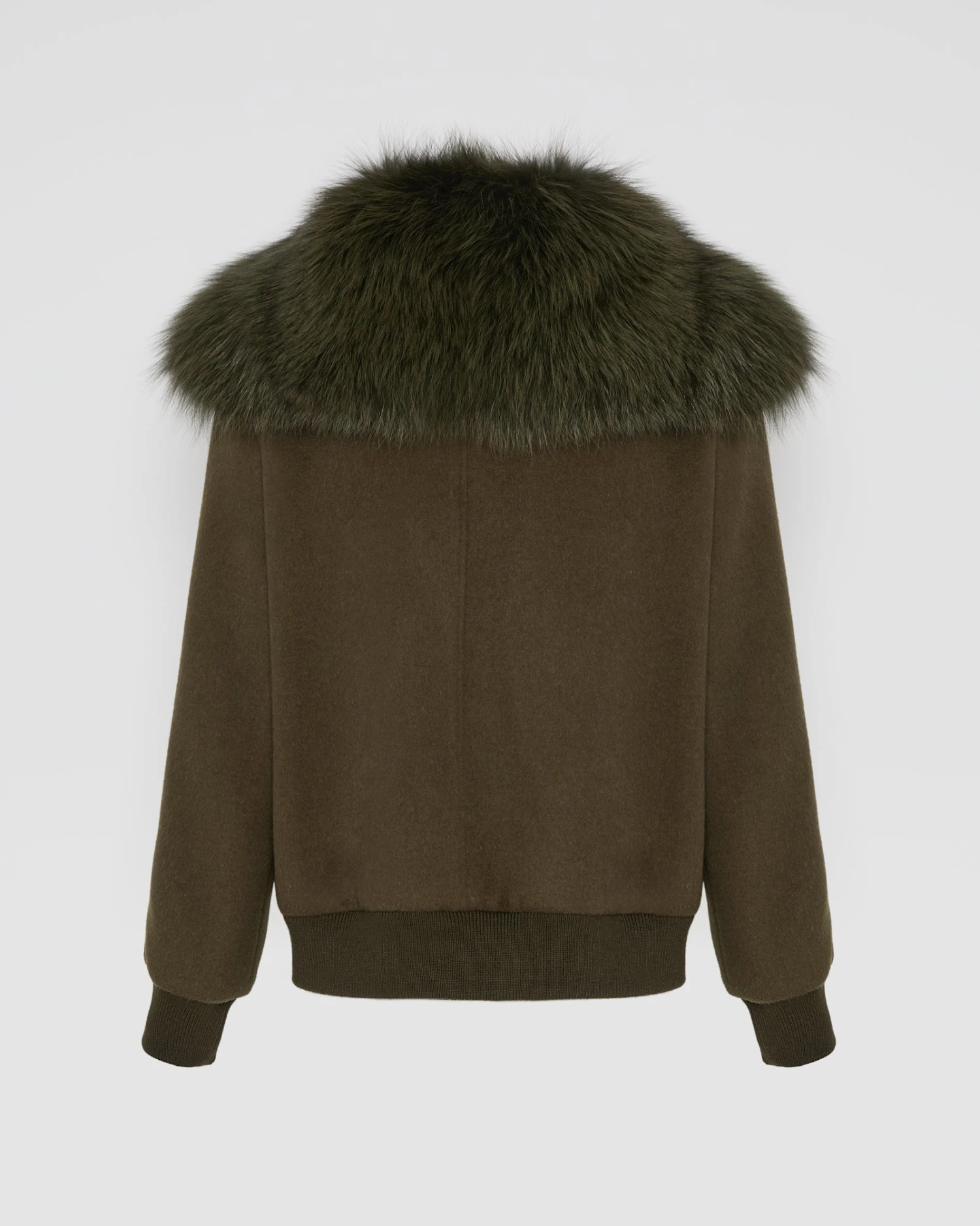 Les styles et les inspirations se mélangent sur cette veste en lainage cachemire entièrement doublée de soie. Dotée de deux poches plaquées à rabat, de poignets en maille, d’un bord-côte sur le bas du vêtement et d’une fermeture zippée au curseur logotypé, ce modèle joue avec les codes sporty et utilitaires. Le col en fourrure de renard amovible qui s’attache parfaitement à la veste grâce à un système de boutons apporte du contraste et de l’élégance. Une pièce versatile qui évolue selon les envies et la saison pour créer une allure ultra-féminine et résolument moderne.