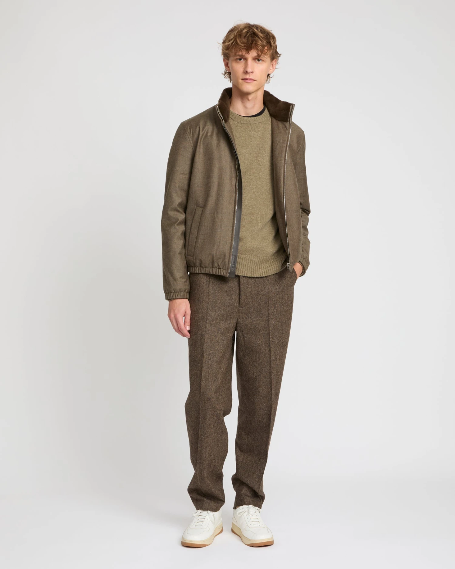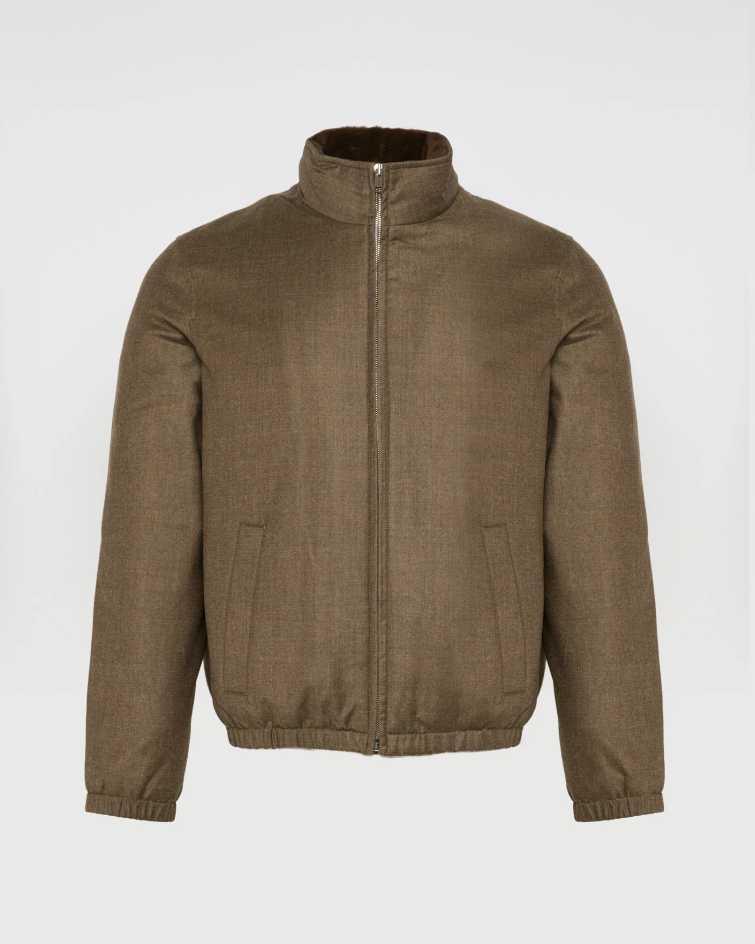 Veste en tissu mélange laine-soie Loro Piana avec col en vison rasé.