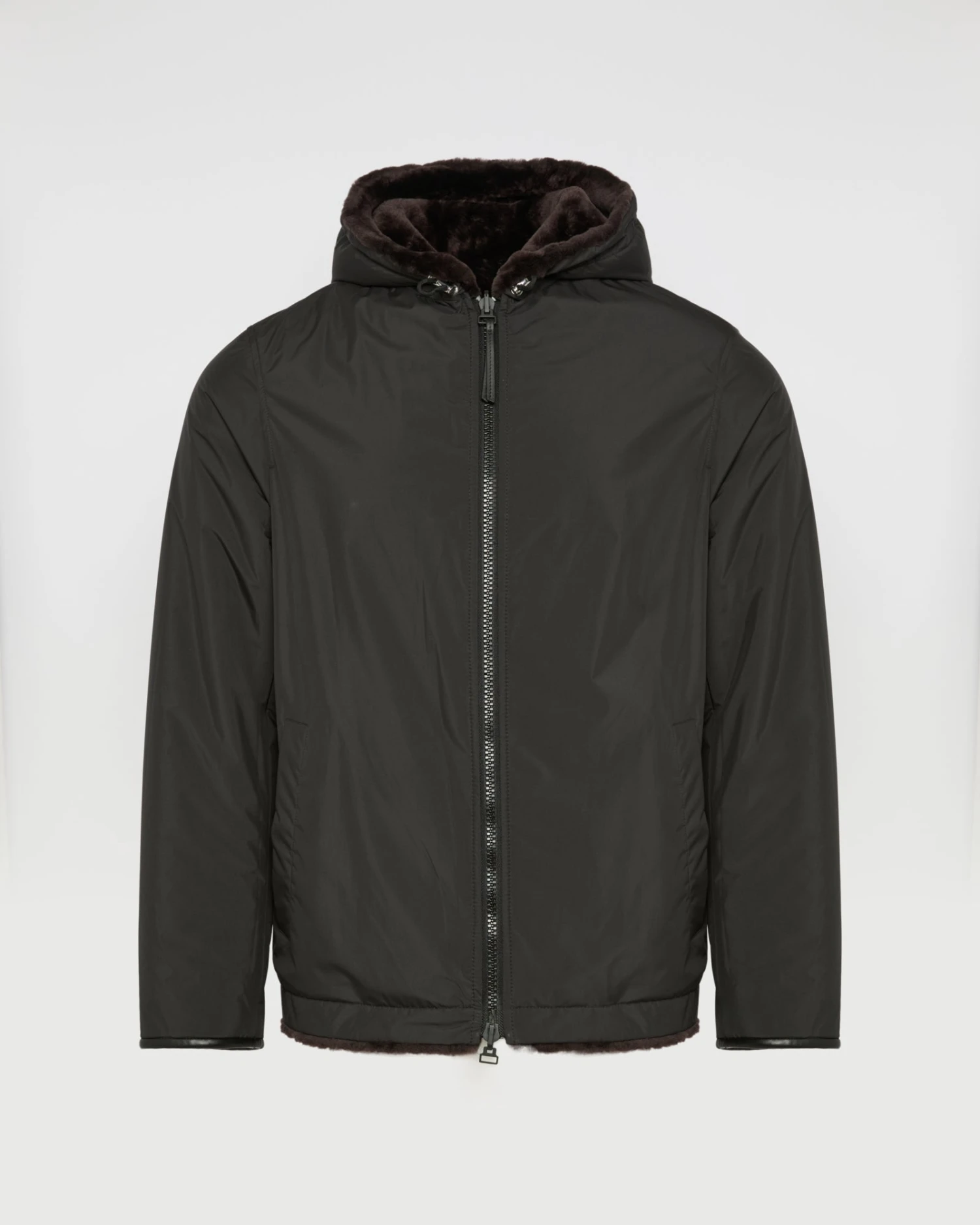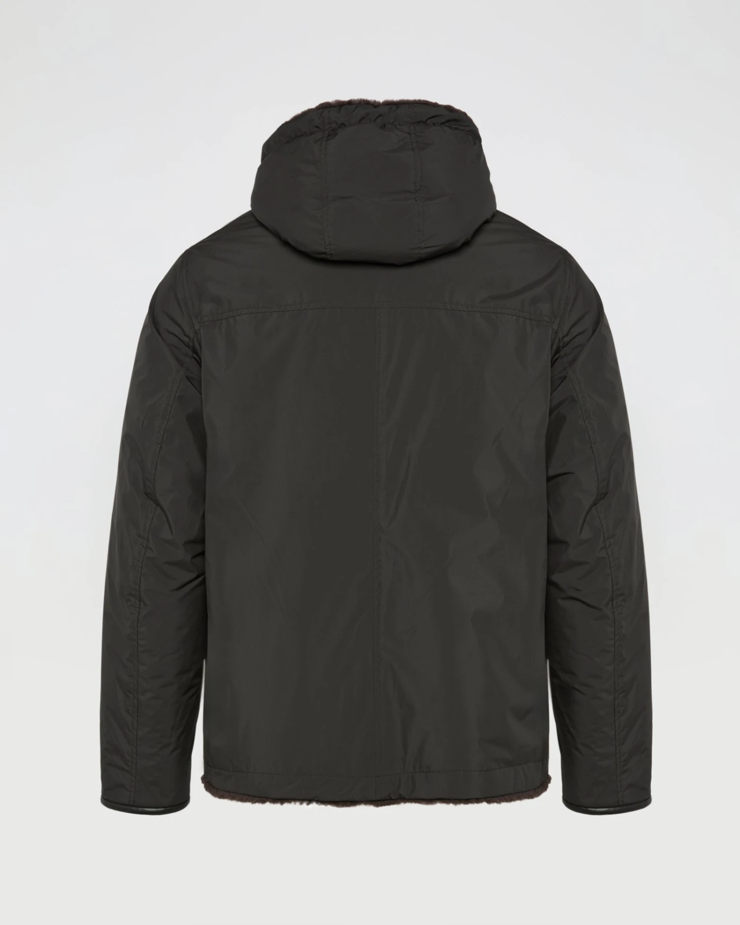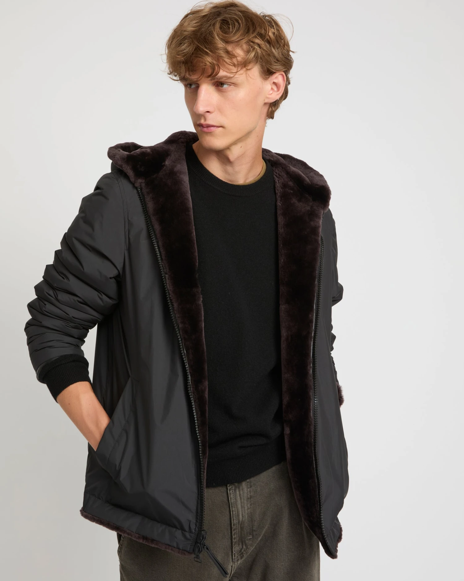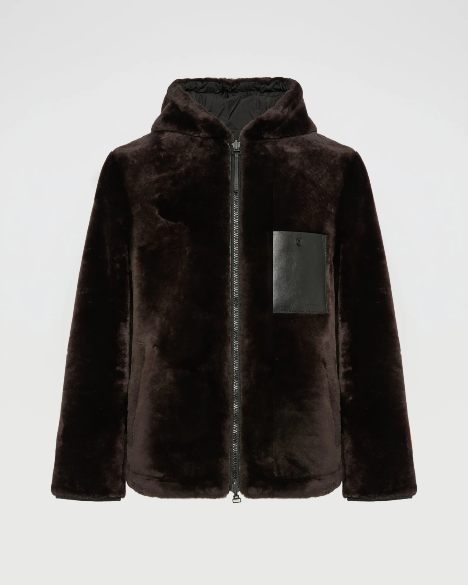Les lignes du hoodie classique inspirent une version versatile et élégante. Sur la face peau lainée, une unique poche poitrine en cuir lisse apporte un détail stylistique et pratique. Sur la face en tissu technique, deux poches zippées côté accueillent mains, téléphone ou clés. L’association parfaite du style et de la fonctionnalité.