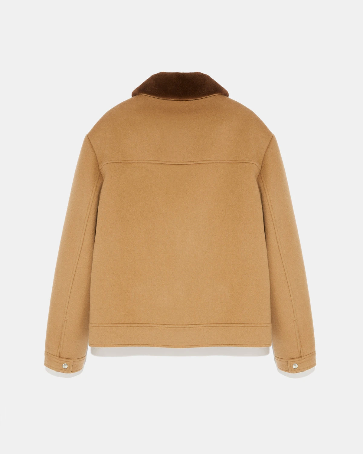 Les lignes classiques de cette petite veste zippée sont travaillées dans un chaleureux tissu double-face en laine et cachemire. Un col en vison amovible apporte chaleur et versatilité à ce modèle distingué, terminé avec des détails en cuir au niveau des poches, du zip et sous le col.
